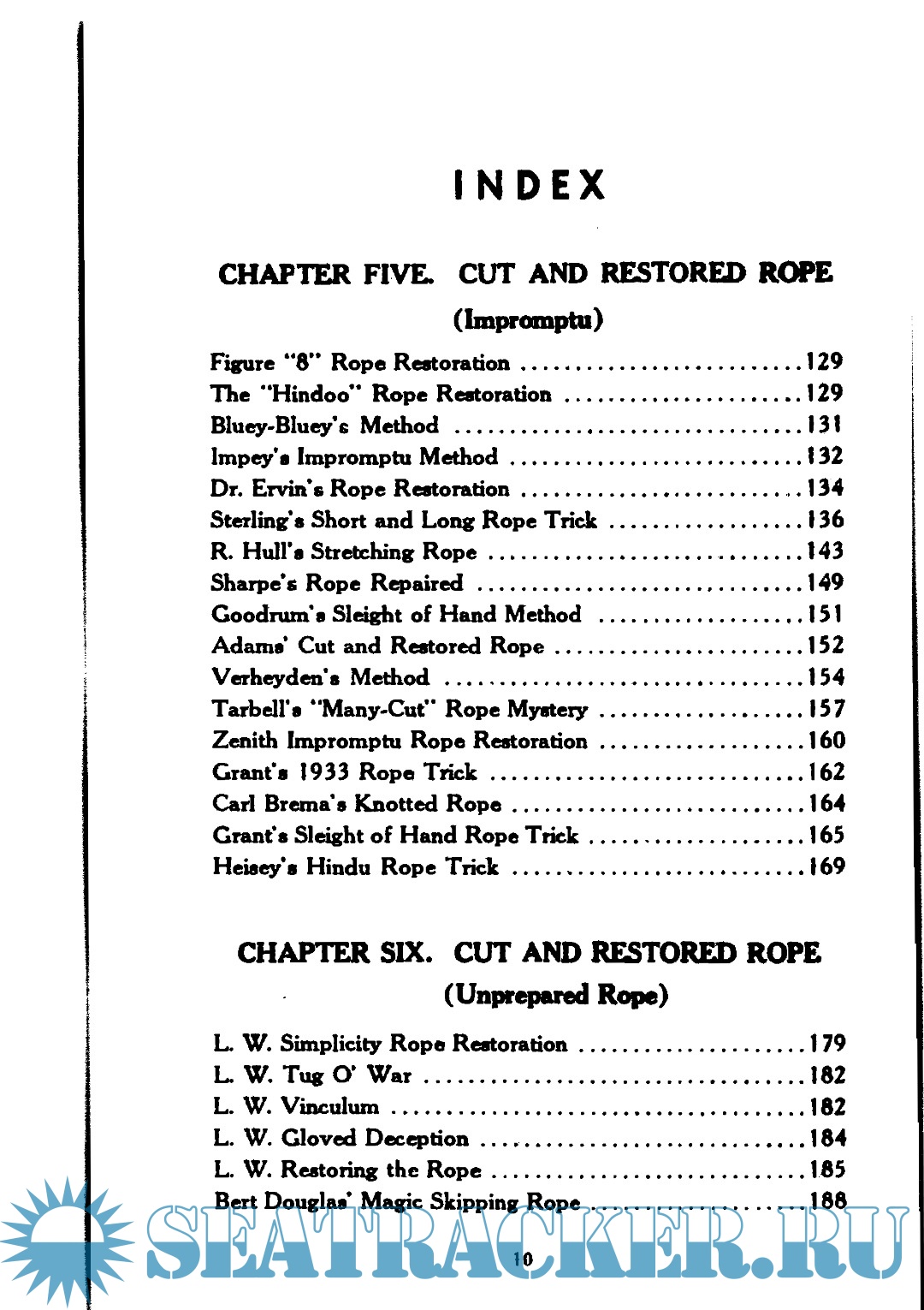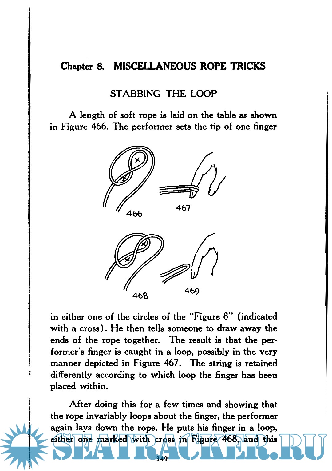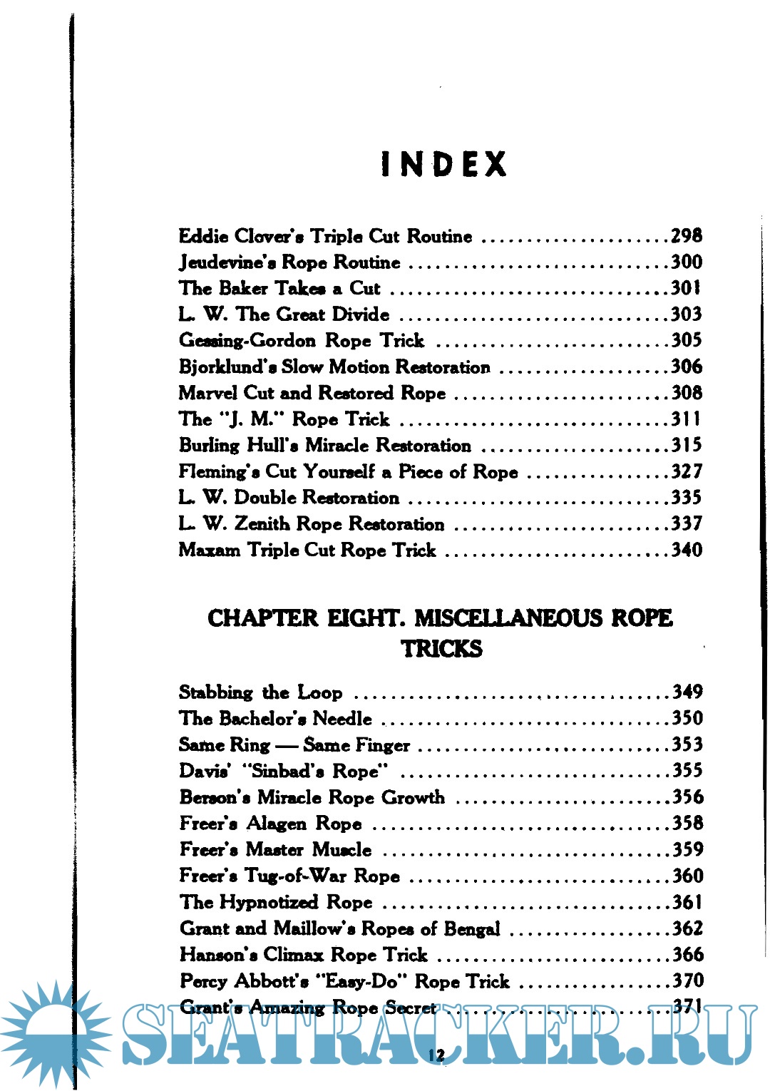 Year: 1975 Language: English Author: James S. Genre: Encyclopedia Publisher: Dover Publications Format: PDF Quality: eBook Pages count: 394 Description: Legendary encyclopedia for magicians contains over 150 tricks: Loop the Loop, Jamison's Severed Rope, The Tarbell Rope Mystery, The Encore Rope Trick, Eddie Clever’s Triple Cut Routine, Bachelor's Needle and many more. Step-by-step instructions and over 500 illustrations show you how to master these dazzling feats.