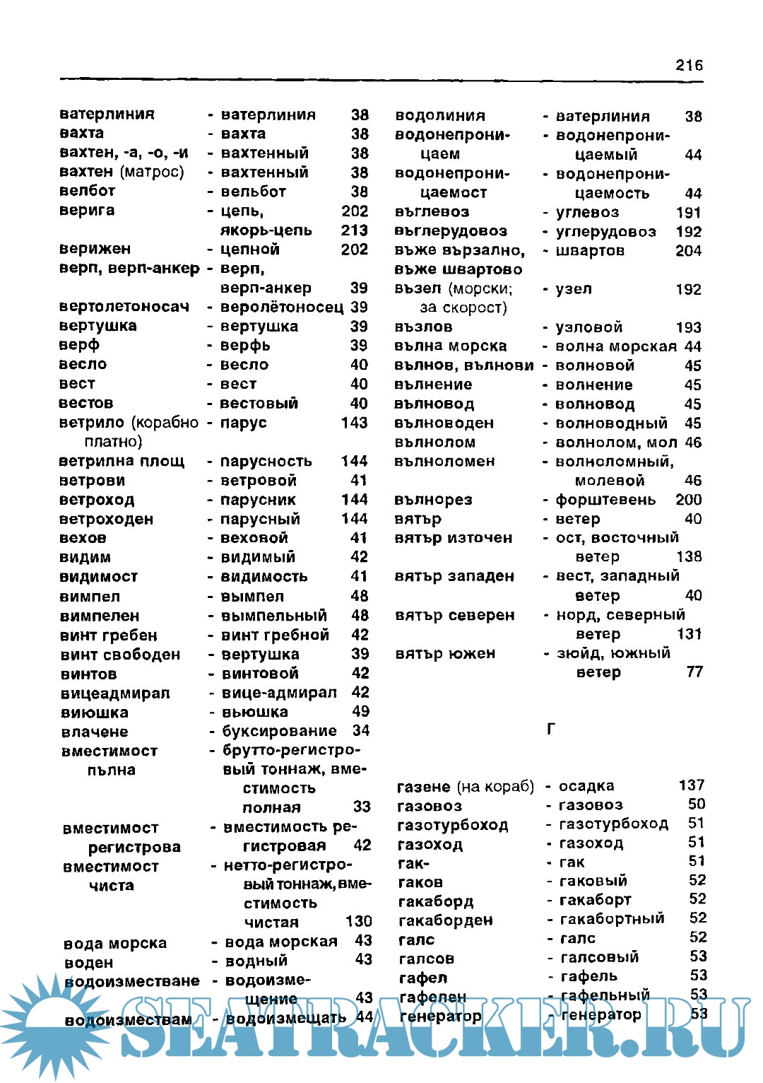 Год выпуска: 1999 Язык: Bulgarian / Russian Автор: Николова C. Жанр: Dictionary Издательство: Стено Формат: PDF Качество: Изначально компьютерное (eBook) Количество страниц: 256 Описание: Обемът на подбрания и включен в настоящия речник терминологичен речников фонд обхваща само съвременната морска терминология, без включване на термини от ветроходния флот и водния спорт, както и от механиката, енергетиката и др., за които са издадени необходимите речници. Независимо от това, че досега българската морска лексика все още не е уточнена напълно, в речника-справочник по корабоводене е направен опит да се даде предимство на съществуващите български еквиваленти пред употребяваните в морската практика заемки. Речникът-справочник по корабоводене има предназначението да окаже езикова и научно-информативна помощ на морските специалисти, корабоводителите от гражданския и военноморския флот, както и на всички, които обичат морето.