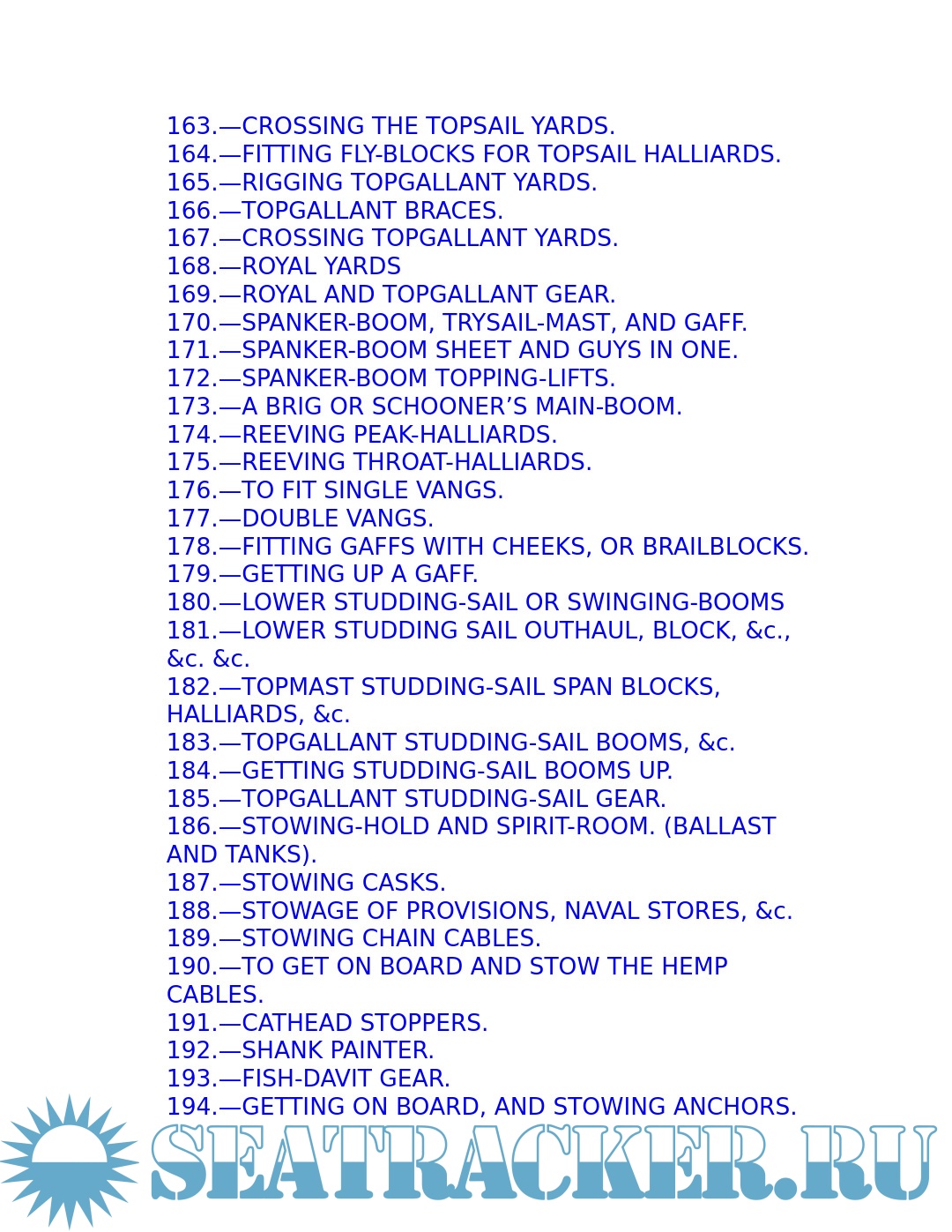 Year: 2013 Language: English Author: Brady W.N. Genre: Dictionary Publisher: Dover Publications Format: PDF/EPUB Quality: eBook Pages count: 611 Description: Immediately upon its publication in the mid-nineteenth century, this book became the Bible of U.S. sailors, who used it daily and followed its advice assiduously. The Kedge-Anchor's no-nonsense prose provided specific instruction for every aspect of sailing the great ships of the age — from knotting and rigging to blacking the guns, from stationing the crew to dealing with the direst emergencies. The young sailor learns about stowing provisions, driving before the wind. Securing the ship for sea, and setting and shifting course. He also learns what to do in the extremities of life at sea: how to unbend a topsail in a gate and how to prepare for a hurricane; what to do if the tiller breaks, the mainmast is carried away, or the ship leaks faster than the pumps can free her. Detailed instructions explain procedures for dealing with fires, squalls, and waterspouts, what to do when the main rigging is shot away by an enemy or when a man has fallen overboard, and how to abandon ship and take to the boats when necessary. Enhanced with 70 rare engravings, a glossary of sea terms, and 10 pages of useful tables, this hard-to-find volume is a genuine maritime classic and an unparalleled glimpse into the realities of shipboard life in the days of sail.