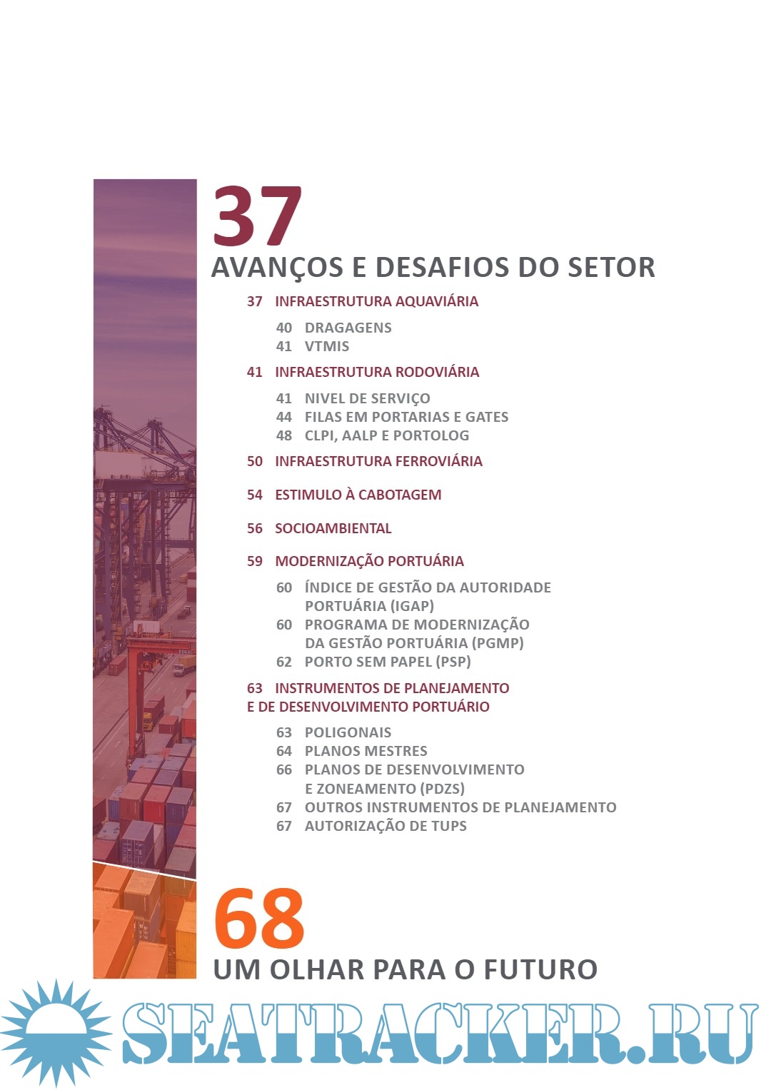 Year: 2019 Language: Portuguese Author: Ministério da Infraestrutura do Brasil Genre: Presentation Publisher: Governo Federal do Brasil Edition: 2019 Format: PDF Quality: eBook Pages count: 78 Description: O Ministério da Infraestrutura tem a satisfação de apresentar o Plano Nacional de Logística Portuária - PNLP 2019. O PNLP é instrumento de Estado dedicado ao planejamento do setor portuário nacional, com o objetivo de projetar cenários de curto, médio e longo prazo, tanto para o crescimento de demanda dos serviços portuários, quanto para orientar intervenções na infraestrutura e nos sistemas de gestão dos portos organizados brasileiros, garantindo alocação eficiente de recursos e de investimentos públicos, privilegiando o alinhamento às diretrizes de logística integrada, conforme preconiza a Lei no 12.815 de 5 de junho de 2013. Principal resultado do terceiro ciclo de atualização que cobre o quadriênio 2015-2019, o PNLP 2019 demonstra a importância do incremento e da renovação contínua do planejamento de Estado, visto que, mesmo em um setor onde os investimentos são de longa maturação, os desafios também evoluem constantemente e o país precisa aprimorar seu planejamento para estar sempre preparado e pensando no futuro para definir suas ações do presente. O PNLP apresenta seus resultados em consonância com o planejamento do Governo Federal, somando esforços e alinhando-se com outros estudos do setor transportes, com destaque para o Programa de Parcerias de Investimentos (PPI). Muitos dos desafios apontados no ciclo anterior do PNLP estão sendo concretizados pelo PPI, que desde 2016 concluiu 48 projetos, sendo 23 de investimentos e ações no setor portuário, e outros 19 projetos portuários encontram-se em andamento, resultando em: »»Mais de R$ 8,5 bilhões de investimento no setor »»Mais de 30 milhões de toneladas em ganho de capacidade operacional »»Mais de 950 mil TEU de ganho de capacidade em movimentação de contêineres Esses números de investimentos decorrentes do PPI aqui resumidos, somados à autorização de novas instalações portuárias e melhorias de produtividade por meio de novos investimentos públicos e privados, demonstram a eficiência do país em aumentar a capacidade de infraestrutura do setor. Com mais esse passo, o Ministério da Infraestrutura enquanto Poder Concedente consolida o planejamento setorial portuário nacional e, em decorrência das atualizações do respectivo Marco Regulatório para o setor e dos investimentos feitos ao longo dos últimos anos, vem superando o maior dos desafios estruturais dos portos brasileiros, justamente a capacidade portuária, restrição histórica repetidas vezes abordada nos estudos para PNLP, desde 2010, para a qual não se dispunha sequer de metodologia e ferramenta adequada para quantificá-la em âmbito nacional e de forma científica. Além de diagnosticar e indicar os déficits de capacidade do setor face às perspectivas de crescimento de demanda, o PNLP identificou e monitorou ao longo do tempo, outros desafios que ainda exigem ações estruturantes de política pública, de gestão e de investimentos para serem tratados; com destaque para a Modernização da gestão portuária com: »»Melhorias dos acessos terrestres em conjunto com a implantação de projetos de inteligência logística »»Interação porto-cidade »»Utilização de energias limpas, sistemas autônomos e tecnologias »»Evolução da frota de navios que frequentam os portos organizados »»Gestão do conhecimento e dos riscos à atividade portuária Tais pontos constituem mais um dos frutos do PNLP e necessitam ainda de uma abordagem com maior foco do planejamento e de estudos à luz do estado da arte do que ocorre nos principais portos do mundo, para que os complexos portuários brasileiros também se tornem benchmarks internacionais, e não meros replicadores de boas práticas de forma isolada. O processo de atualização do PNLP contou com intenso trabalho das equipes de todas as áreas do Ministério da Infraestrutura, sempre em colaboração com a Agência Nacional de Transportes Aquaviários - Antaq e, com diversos órgãos da Administração Pública, como as Autoridades Portuárias, a Academia e representantes do setor privado, usuários e demandantes dos serviços portuários, por meio da rica participação nas visitas técnicas, nas reuniões de trabalho e nos estudos realizados, bem como por meio das inúmeras entrevistas para formação de bases de dados, informações e subsídios. Concluída esta importante entrega, que marca o encerramento do 3º Ciclo de Planejamento Setorial Portuário, nosso próximo estágio de evolução do planejamento estratégico de transportes e, em especial, do setor portuário brasileiro, será a integração do PNLP ao Plano Nacional de Logística – PNL. Essa nova etapa permitirá identificar maiores e melhores sinergias entre os vários modos de transporte, tendo os portos como referências estratégicas para a logística de carga do país. A todos que participaram e contribuíram para a realização deste PNLP 2019, registro aqui os meus sinceros agradecimentos e a certeza da excelência do trabalho realizado.
