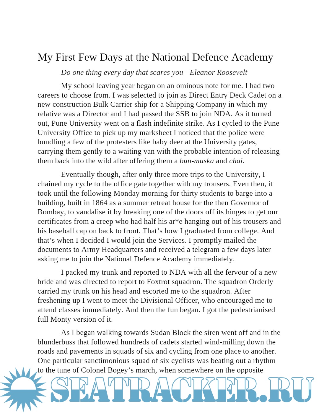 Description: This book is a collection of fictional anecdotes referring to my time spent at the National Defence Academy, the Indian Navy and post retirement from the Navy.