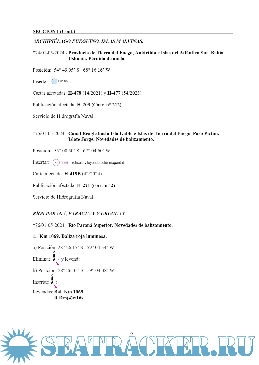 Year: 2024 Language: Spanish Author: Servicio de Hidrografía Naval Publisher: República Argentina Ministerio de Defensa Edition: Mayo 2024 Format: PDF Quality: eBook Pages count: 55 Description: El Servicio de Hidrografia Naval presta el servicio público de "Seguridad Náutica", entreotras actividades y edita desde 1918, la presente Publicación H-216 "Bletín Avisos a Los Navegantes".