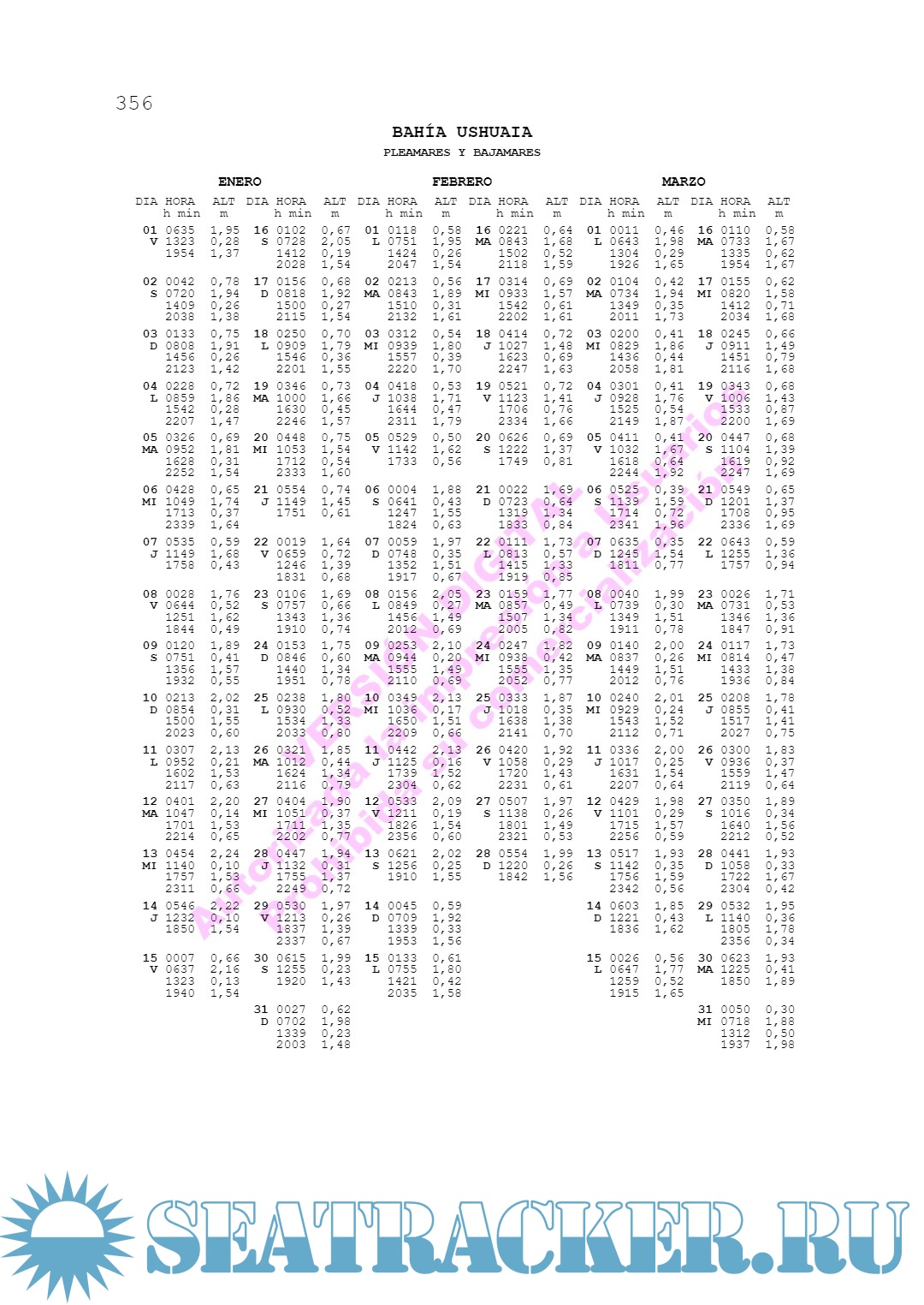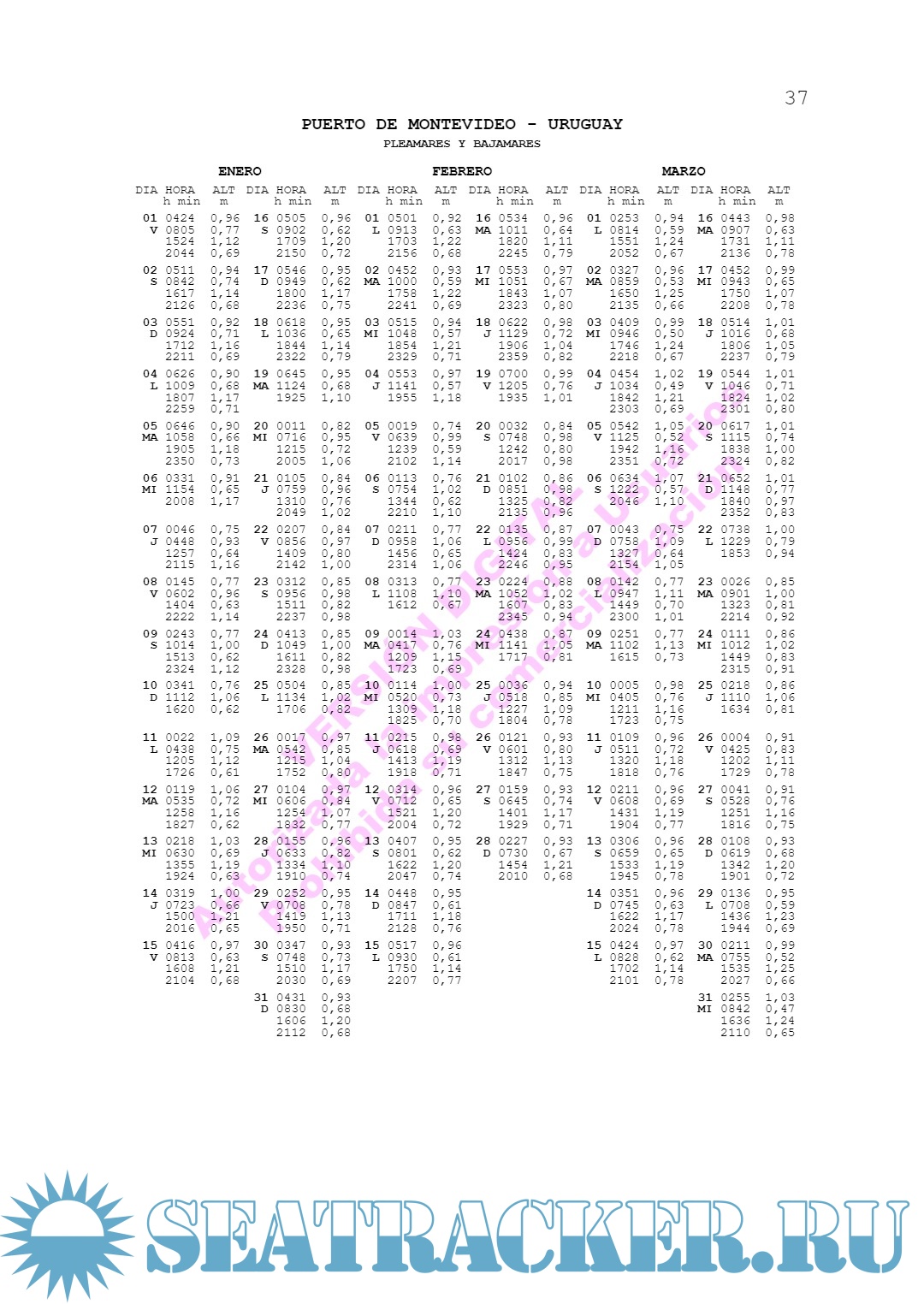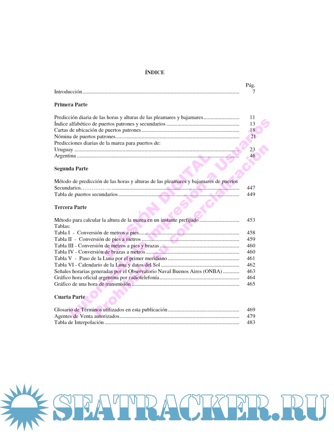 Description: En estas Tablas de Marea se publican las horas y alturas de las pleamares y bajamares para los puertos de la República Argentina y algunos puertos de la República Oriental del Uruguay para el corriente año. Asimismo, se incluyen predicciones horarias para algunos puertos patrones argentinos cuyas características de marea así lo requieren.