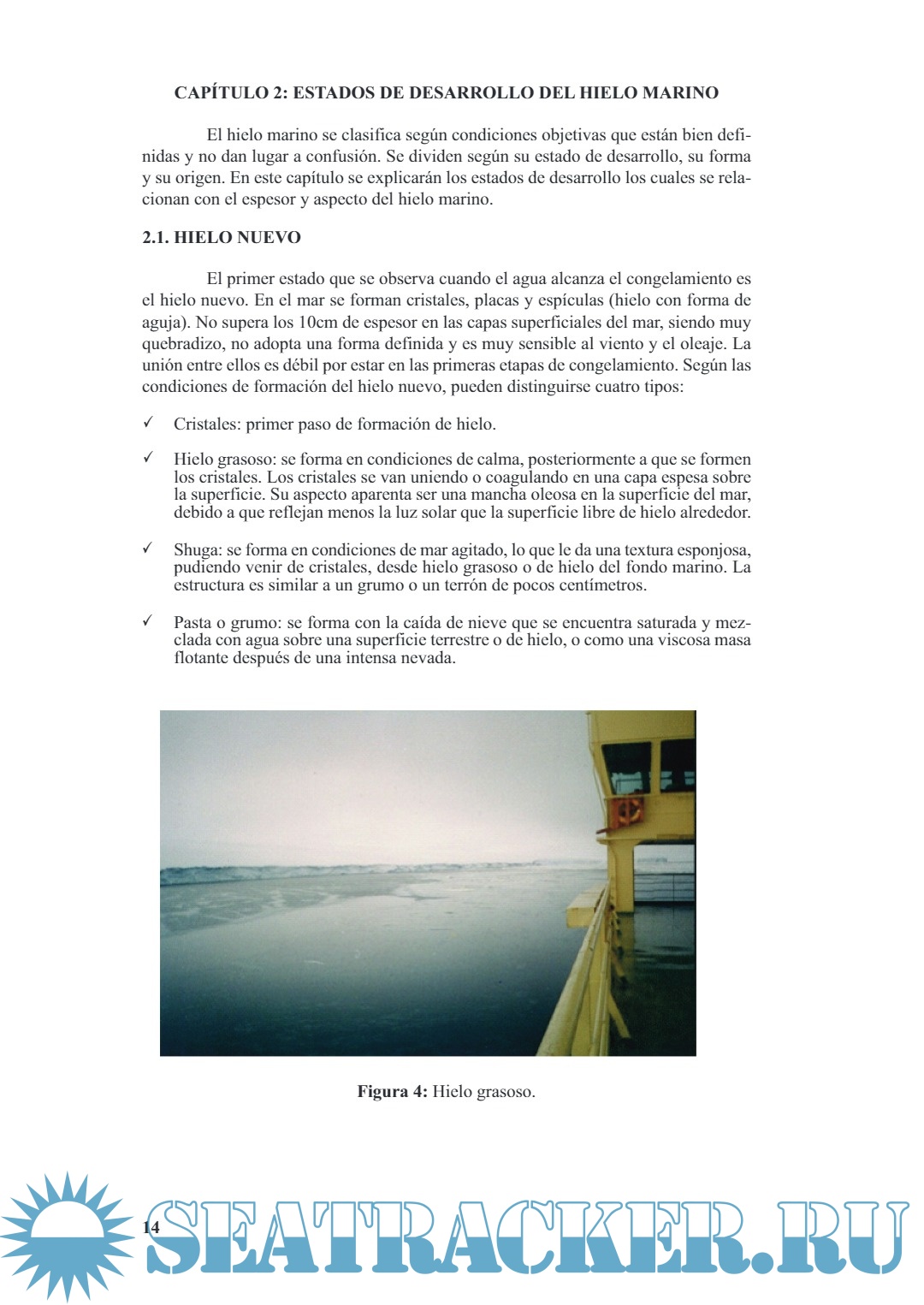 Year: 2023 Language: Spanish Author: Servicio Meteorológico de la Armada Genre: Manual Publisher: República Argentina Ministerio de Defensa Edition: 2ª Format: PDF Quality: eBook Pages count: 71 Description: Las observaciones del hielo marino y de los témpanos son de gran importancia para la seguridad náutica al ser una de las pocas fuentes de información directa en aguas con presencia de hielo, y permite la elección de las mejores rutas de navegación y la recopilación histórica de los datos glaciológicos. Dichas observaciones pueden ser realizadas desde un buque, desde la costa, desde una aeronave o desde la interpretación de datos provenientes de sensores remotos a bordo de satélites. Cada observación tendrá su particularidad no sólo temporal, porque pueden ser horarias, diarias, semanales o mensuales, sino también espacial, porque pueden ser representativas del derrotero de un buque, del vuelo de una aeronave o de los alrededores de una base. Las observaciones de hielo presentan múltiples funcionalidades. Un observador de hielo a bordo de un buque con capacidad polar o de un rompehielos puede asesorar de forma directa al comandante, al igual que uno ubicado en una base antártica cuando un buque se encuentre navegando en las cercanías. A su vez, las observaciones son utilizadas como información de campo para la interpretación y validación de imágenes satelitales, las cuales son empleadas, entre otros fines, a la generación de cartas de hielo que informan la situación glaciológica de manera actualizada y georreferenciada. Las observaciones glaciológicas son relevantes para el asesoramiento en la toma de decisiones en la navegación. Los registros de hielo que se realicen contribuyen a nutrir las estadísticas de cada zona para ser posteriormente puestas a disposición del usuario interesado. De esta manera, a partir de una base de datos histórica de hielo, se podrán evaluar alternativas en el futuro al comprender el comportamiento de las condiciones glaciológicas y como estas varían en una determinada región. Frente a la trascendencia de estos registros, el deber del observador es reportar las condiciones de hielo tal cual se presentan al momento de la observación. Debe ser responsable de mantener vigilancia continua y cercana del hielo, efectuar sus observaciones con precisión y mantener ordenados sus registros. Debe apegarse a los horarios rutinarios de observación y generar los reportes en los horarios establecidos. Dadas las condiciones extremas del lugar en que se observa, debe contemplar que habrá días que no podrá efectuar la observación o que tendrá problemas de comunicaciones. Es por ello que la tarea de mantener un registro y archivo de las observaciones glaciológicas es de gran importancia. Toda esta información debe ser reportada, siendo la misma posteriormente recopilada y archivada por el Departamento Meteorología del Servicio de Hidrografia Naval. Los lineamientos y la terminología de este manual seguirán las publicaciones de la Organización Meteorológica Mundial OMM No. 259 "Nomenclatura de la OMM del hielo marino", OMM No. 558 "Manual Servicios Meteorológicos Marinos", así como también las directrices impartidas por los Grupos de Expertos y de Trabajo Internacional que se abocan a esta temática.