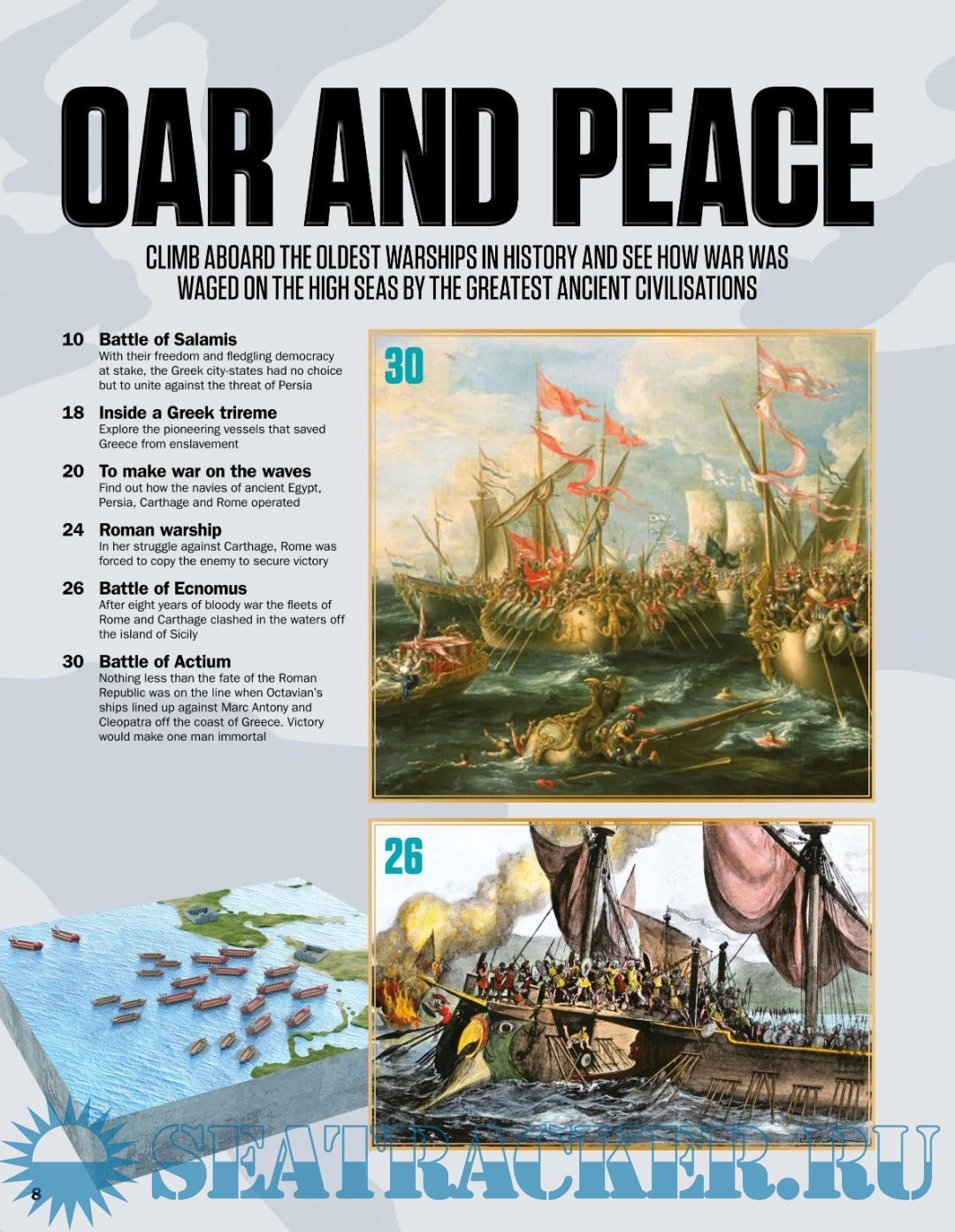 Year: 2024 Language: English Author: Charles Ginger Genre: Periodical (magazine) Publisher: Future Publishing Limited Edition: 3rd | Digital Format: PDF Quality: eBook Pages count: 132 Description: Grab the taffrail, sailor! You’re about to immerse yourself in a world of brutal sea battles, cutting- edge warships and brilliant commanders. Prepare to board a Greek trireme and clash with a Persian invasion fleet hellbent on extinguishing democracy and enslaving the West. If victory is yours further clashes await you from Lepanto and Trafalgar to Midway and the sinking of Yamato, Imperial Japan’s most formidable battleship. On your journeys across the seas you will meet a 16th- century admiral still hailed as a hero in Korea and stand on deck beside the ambitious commander who thwarted Napoleon. Then you will board the ships of the future and learn how naval warfare is changing thanks to the latest technology. Additional info: Part of the History of War bookazine series.