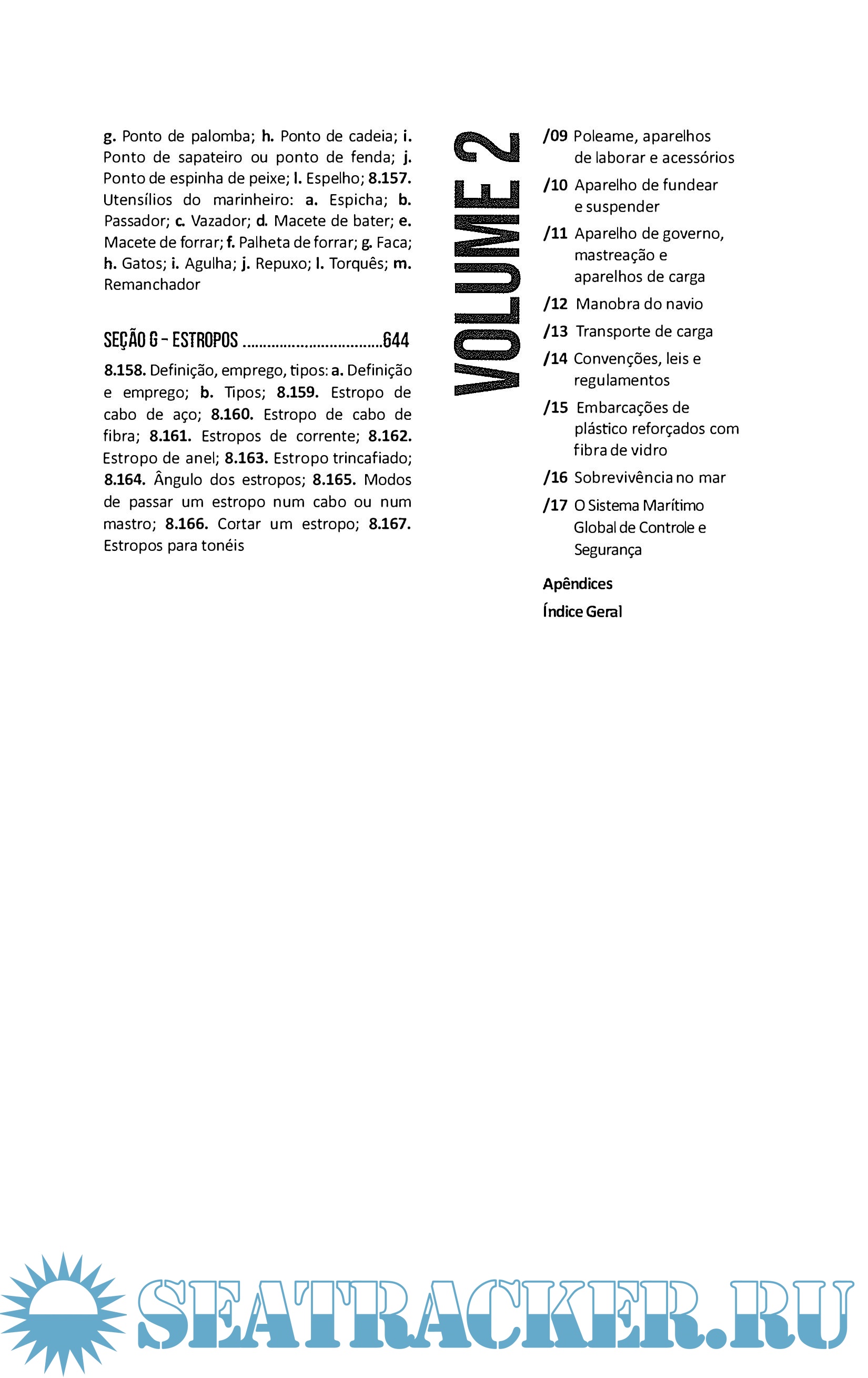 Description: O livro Arte Naval conta com uma nova edição, totalmente reformulada, revisada e atualizada, atendendo às mudanças e avanços tecnológicos que o tempo impôs. O volume 1 apresenta definições minuciosas sobre os componentes e estruturas de um navio, tipos de embarcações, materiais e técnicas de construção naval; o volume 2 é dedicado aos instrumentos e sistemas de marinharia; técnicas de manobra de navio, procedimentos para transporte de cargas; convenções, leis e regulamentos ligados à atividade marítima; além de questões importantes quanto à sobrevivência no mar e à segurança da navegação.