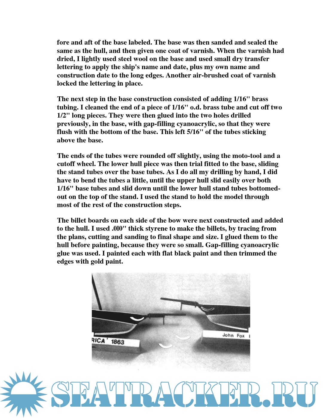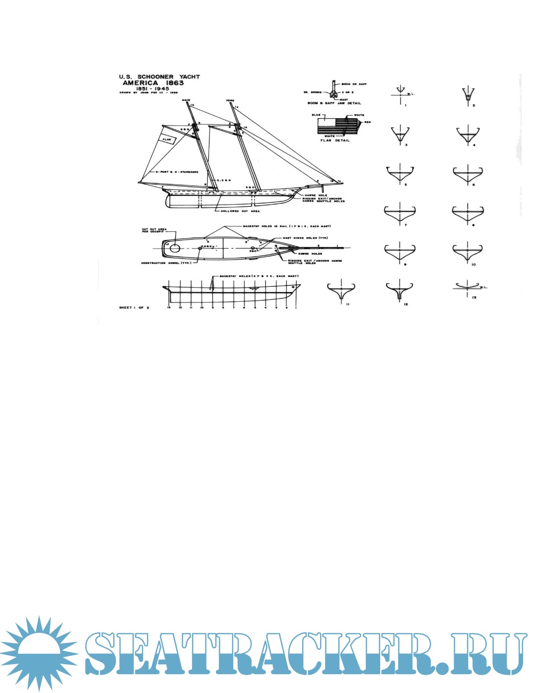 Year: - Language: English Author: Fox J. Genre: Manual Format: PDF Quality: eBook Pages count: 32 Description: My model of the AMERICA followed the same building procedures as those used in my BLUENOSE model and article. Therefore, I will be referring back to that information at times during my discussion of the America's building. For those of you who have mentioned a desire for a materials list for models described in articles, I have included one along with my bibliography.