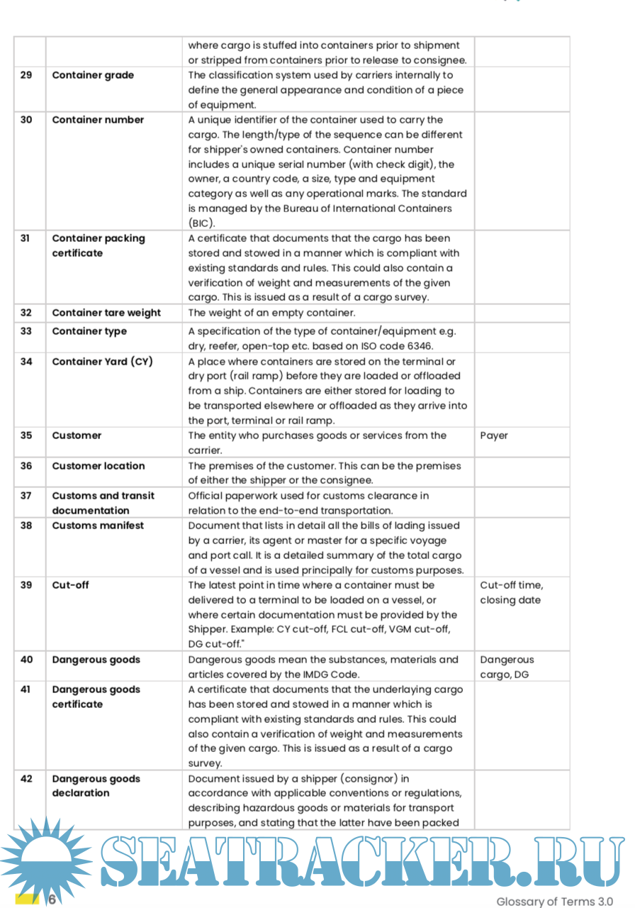 Glossary of Terms 3.0 in Container shipping