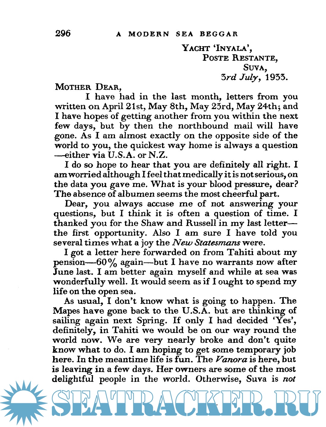 Year: 1938 Language: English Author: Utley T. Genre: Historical Publisher: Peter Davies Format: PDF Quality: eBook Pages count: 353 Description: A Modern Sea Beggar: Being the Story of His Cruise From Newlyn to Fiji in the Yawl 'Inyala', With Letters Telling of His Life in the South Seas