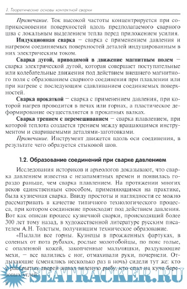 Описание: Рассмотрена роль сварки давлением в современной технике, а также в подготовке и практической деятельности специалистов. Приведены сведения о ее теоретических основах и дано описание основных процессов, характерных для образования соединения в твердой фазе. Рассмотрены преимущества сварки давлением перед методами сварки плавлением, приведена классификация способов сварки давлением. Дано описание применяемых сборочно-сварочных приспособлений, дефектов сварных соединений и особенностей контроля качества сварки.