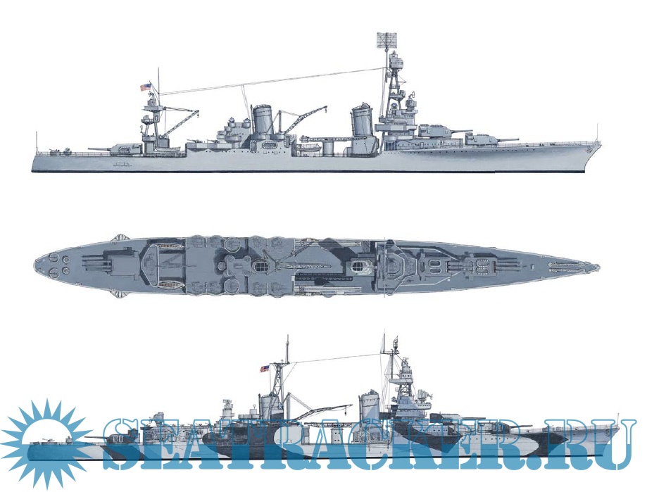 Description: Designed and produced under the regulations of the Washington Naval Treaty, the heavy cruisers of the Pensacola, Northampton, Portland, New Orleans and Wichita classes were exercises in compromise. While they possessed very heavy armament – the Pensacolas, for example, carrying a main battery of ten 8” guns – this came at the cost of protection – armor was the same thickness as a gun cruiser, and incapable of protecting the vessels from enemy 8” fire. As the classes evolved, these flaws began to be corrected, with the main battery being reduced, and increased protection being added to the vital areas of the ship. Despite these drawbacks, the pre-war heavy cruiser classes served with distinction throughout World War II.
