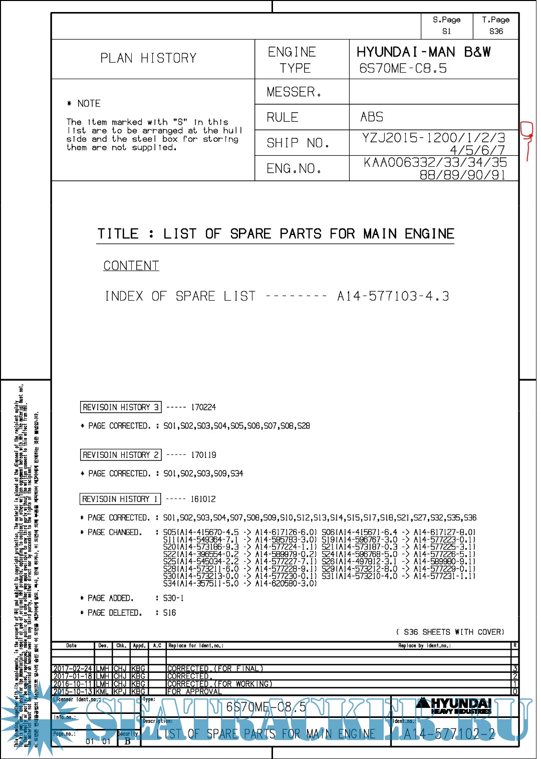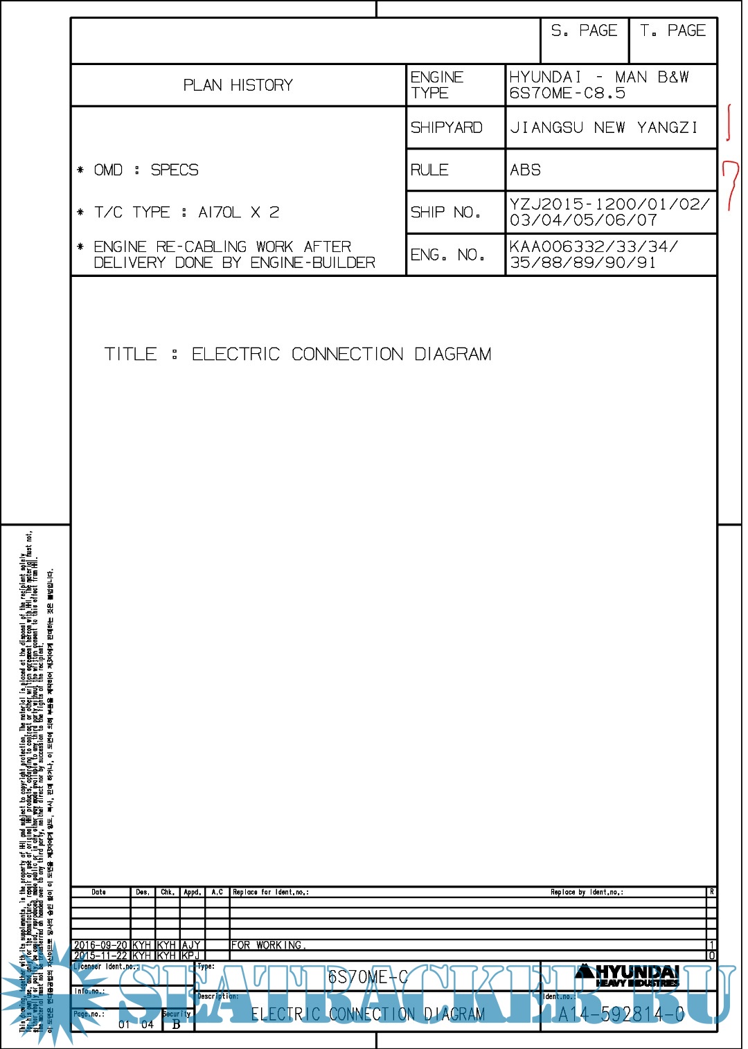 Description: Final drawings for Main Engine Hundai MAN B&W 6S70ME-C8.5.