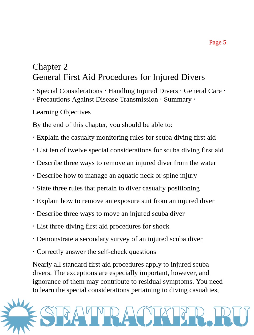 · Demonstrate the procedures for the secondary survey of an injured scuba diver