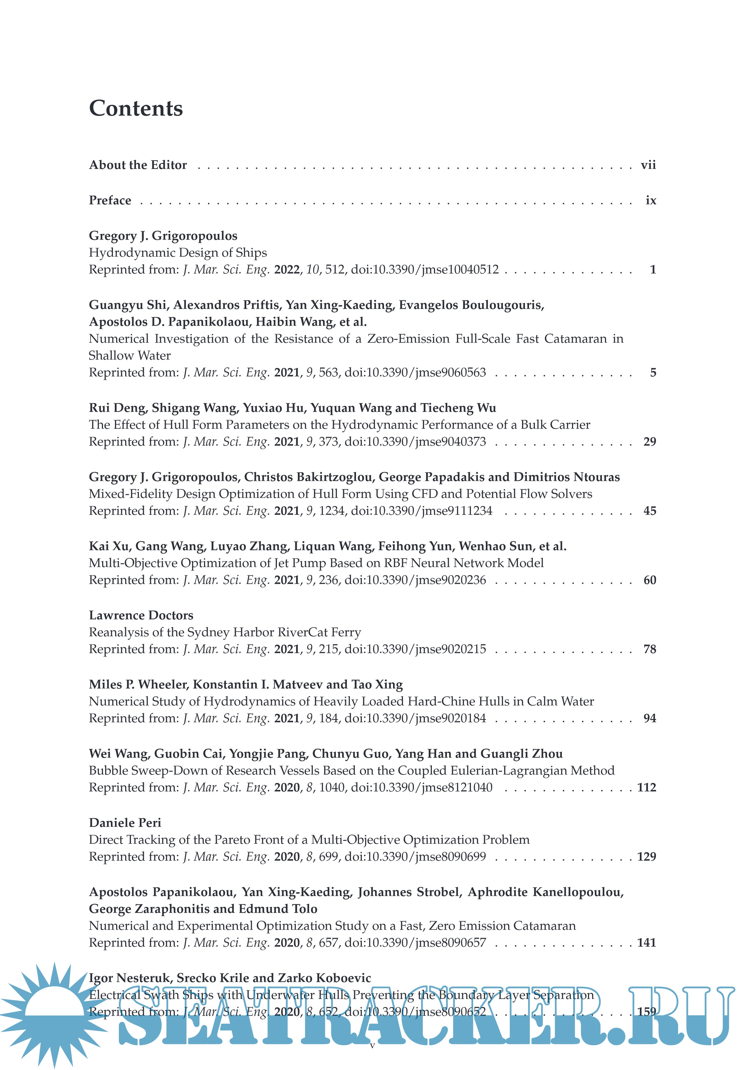 Year: 2024 Language: English Author: Gregory Grigoropoloulos Publisher: MDPI ISBN: 978-3-7258-1606-4 Format: PDF Quality: eBook Pages count: 216 Description: This is a Reprint of the Special Issue Hydrodynamic Design of Ships that was published in Journal of Marine Science and Engineering. The assessment and the optimization of the hydrodynamic performance are essential for the design of modern competitive ships serving their missions in an efficient way. Potential or viscous flow modeling is used for the numerical evaluation of ship designs to be validated using scaled model tests. Bio-memetic methods (genetic and evolutionary algorithms, artificial neural networks) are mainly employed in hydrodynamic optimization. The optimization procedure accounts for the area of ship service and its mission. The papers included in this Special Issue represent the current attempt to provide a reliable estimation of the hydrodynamic performance assessment and robust optimization schemes for hull forms, resulting in competitive ship designs.