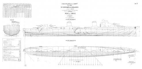 Описание: 33 листа архивных чертежей французского эскадренного миноносца (лидер) LE FANTASQUE 1934 год