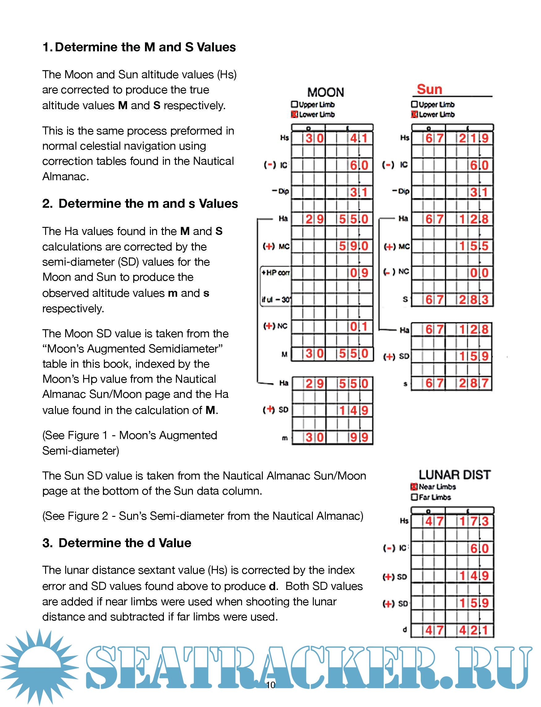 Forms and full instructions for using the tables are included. Easily clear the lunar distance and compute Greenwich time with pencil, paper and NO calculator.
