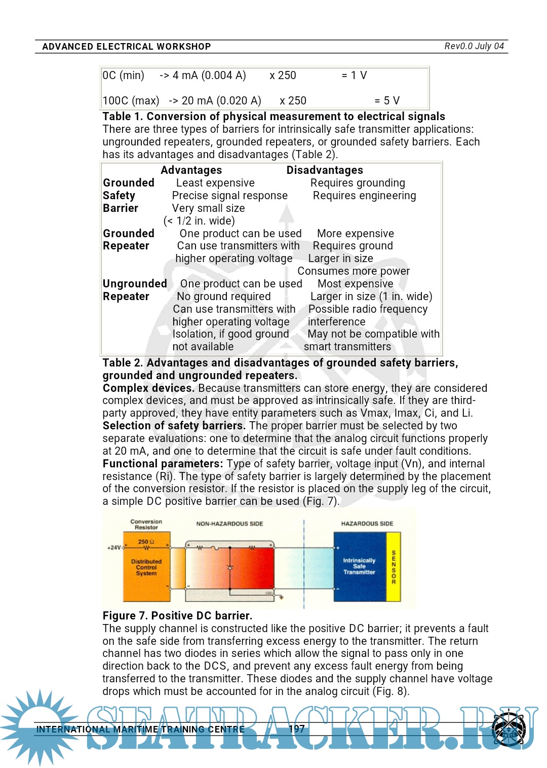 Year: 2004 Language: English Author: Maersk Genre: Training courses Publisher: International Maritime Training Centre - Wilhelmsen Format: PDF Quality: eBook Pages count: 205 Description: The workshop provides in-depth training on various electrical systems and troubleshooting techniques essential for marine engineers. It focuses on improving participants' confidence and competence in handling and analyzing electrical circuits, components, and systems. Course Objectives: - Understand the fundamental principles of electrical technology. - Identify and interpret electrical symbols, components, and their functions. - Learn to trace and troubleshoot complex electrical circuits logically. - Gain hands-on experience with advanced electrical systems and equipment. Theoretical: - Alternating current (A.C.) fundamentals and generator operations. - Power generation and parallel generator operations. - Maintenance of air circuit breakers and hazardous zones. - Motors, starters (including DOL, reduced voltage, and variable frequency drives), and soft starters. - Secondary battery maintenance and cathodic protection. Practical: - Use of diagnostic tools like multimeters and meggers. - Hands-on experience with contactors, relays, and timers. - Wiring and troubleshooting of various starters (DOL, star-delta, etc.). - Advanced troubleshooting on boiler control panels and other shipboard electrical systems. Duration: - 4 to 6 days, depending on the specific course structure. Target Audience: - Marine engineers, electrical officers, and related professionals seeking to improve their expertise in electrical systems.