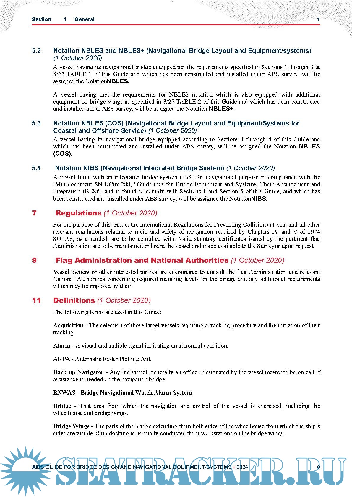 The requirements for vessels fitted with an integrated bridge system for navigational purpose is also included in this Guide.