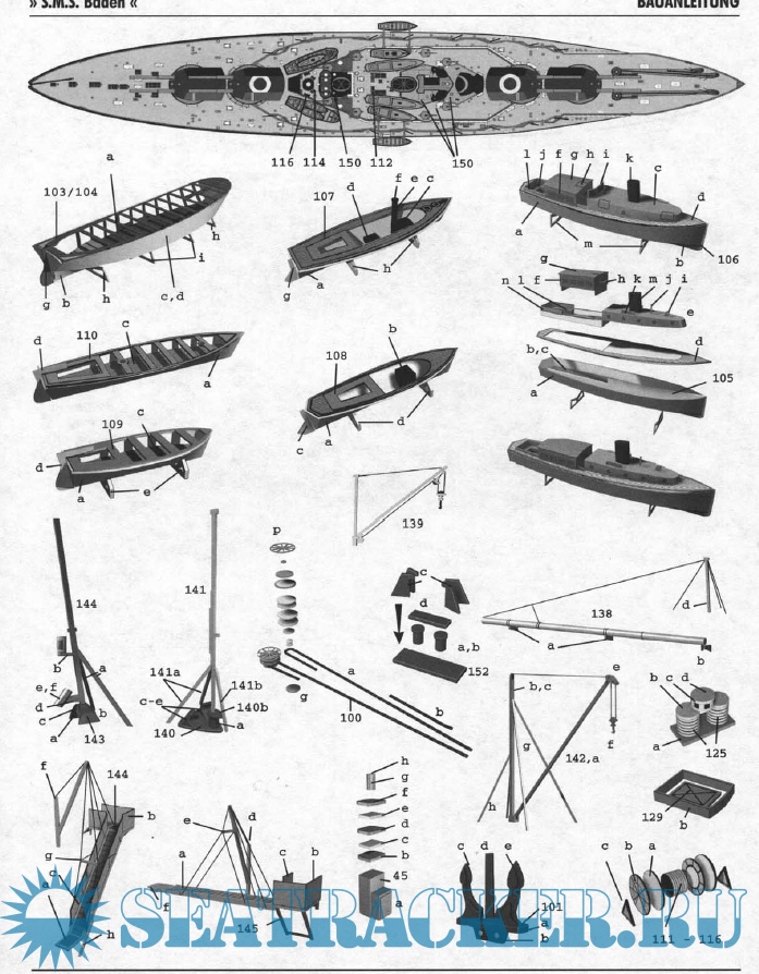 37 листов цветных выкроек и инструкций для изготовления бумажной модели германского линкора SMS Baden 1916 год в масштабе 1:250Скриншоты