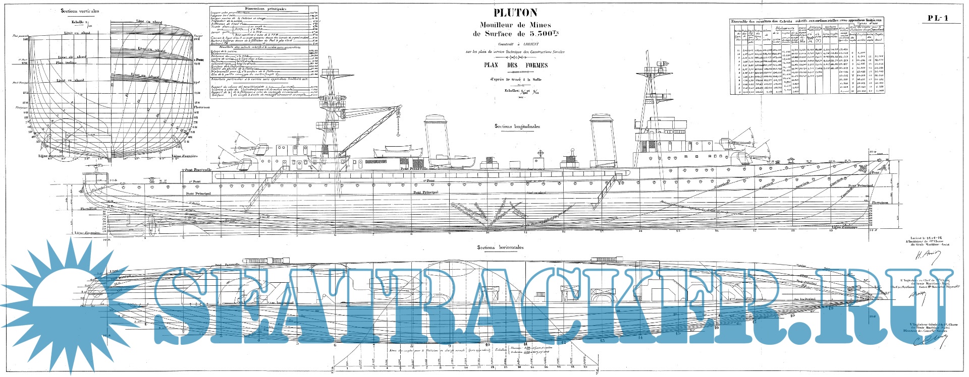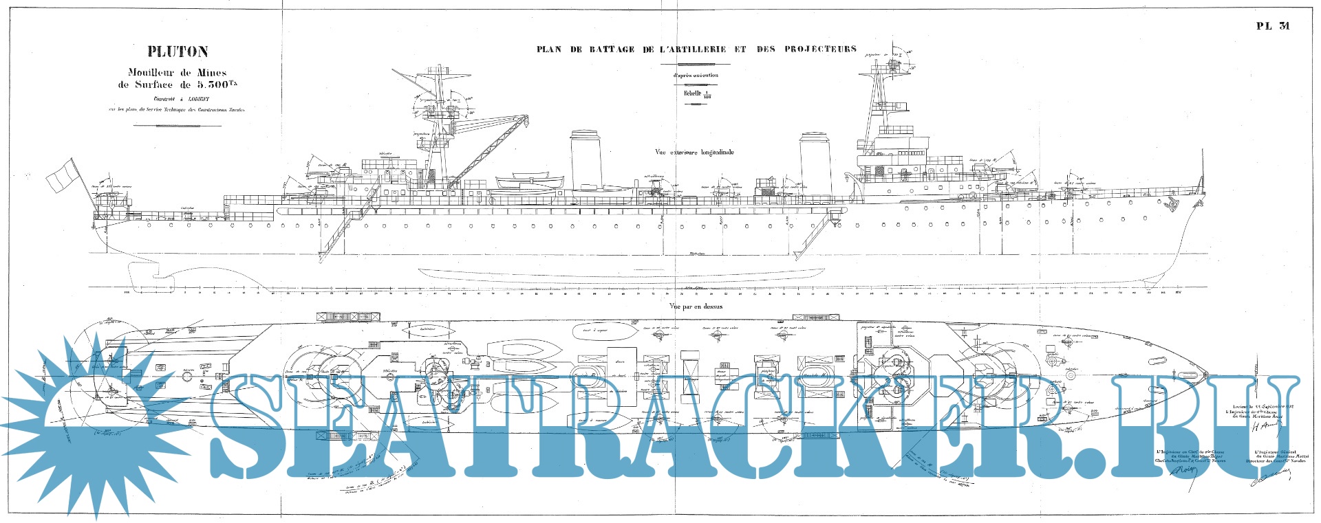 Архивные чертежи французского минного заградителя PLUTON 1929 год