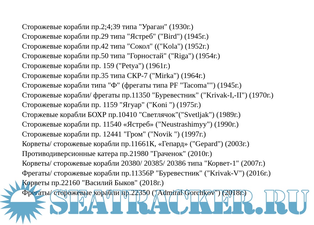 Описание: Фрегаты, корветы, сторожевые корабли СССР и России