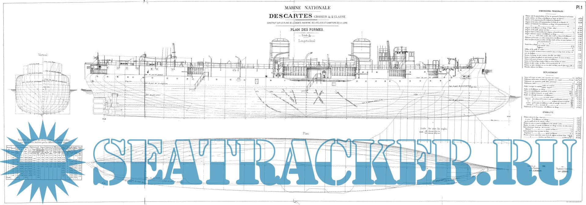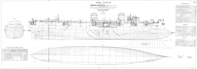 Архивные чертежи французского крейсера 2-го ранга DESCARTES 1894 год