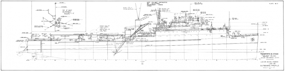 Архивные чертежи испанского военного транспорта GALICIA (TA-31) 1971 год