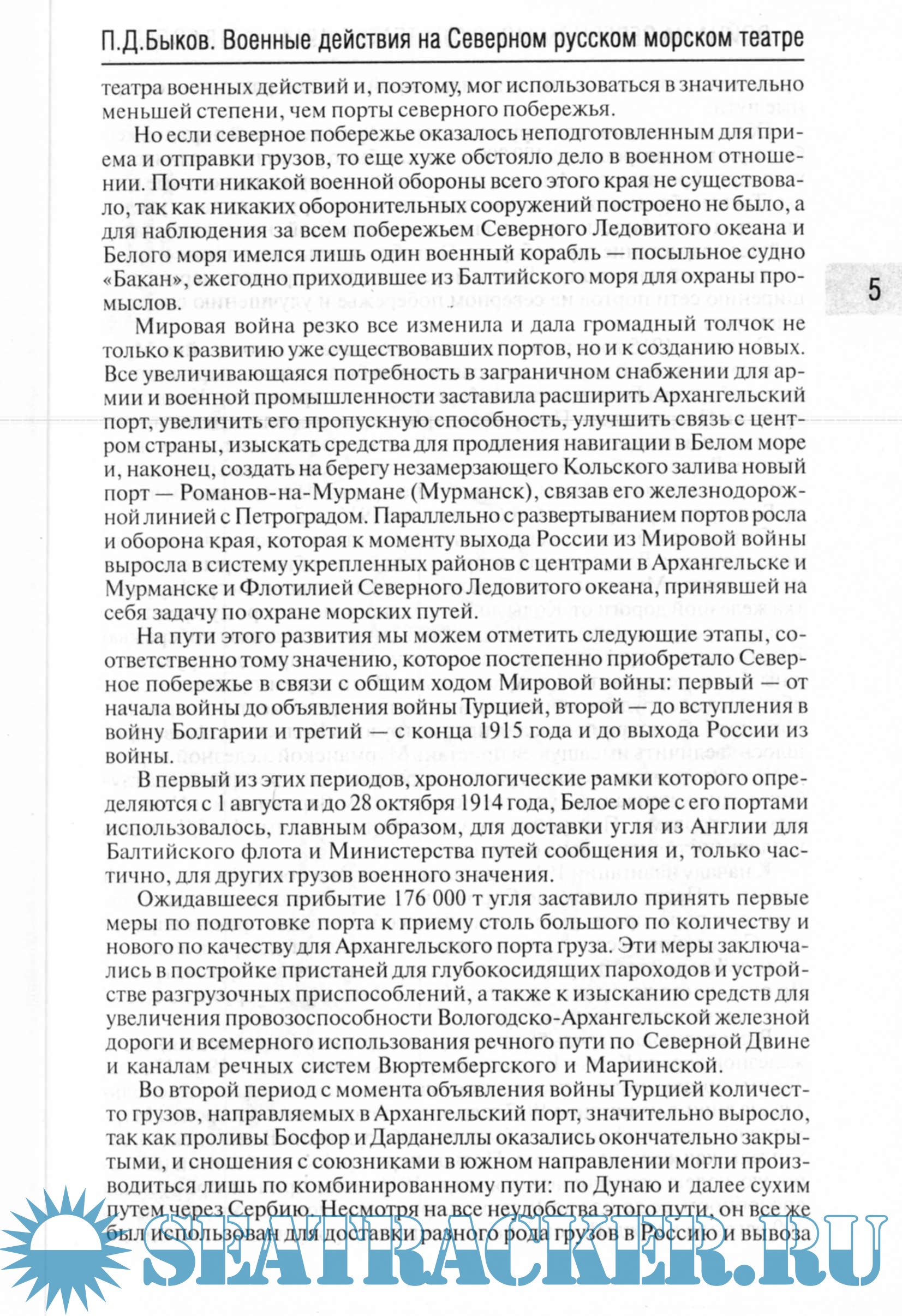 СодержаниеП.Д. Быков. Военные действия на Северном русском морском театре в империалистическую войну 1914-1918 годов