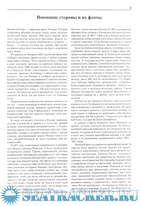 Описание: Предлагаемая вниманию читателя работа является главой классического труда выдающегося английского военно-морского историка Х.В. Вильсона «Броненосцы в бою» ( «Ironclads in action»), изданного в 1896 году в Санкт-Петербурге Военно-морским ученым отделом Главного морского штаба. Книга эта давно стала библиографической редкостью. Между тем, боевые действия на море в период японо-китайской войны, имевшие прямое влияние на развитие кораблестроения и военно-морского искусства накануне трагической для нашего Отечества и флота войны русско-японской, пожалуй, так и не получили с тех пор более подробного и, вместе с тем, столь же красочного и живого описания.