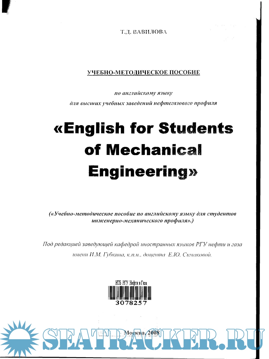 Год выпуска: 2008 Язык: Русский, Английский Автор: Т. Д. Вавилова Издательство: РГУ нефти и газа имени И.М. Губкина Формат: PDF Качество: Отсканированные страницы Количество страниц: 123 Описание: Учебно-методическое пособие предназначено для студентов III курса высших учебных заведений, обучающихся по специальности «Инженерная механика». Цель пособия — подготовить будущих специалистов к профессиональному общению на английском языке, развить навыки чтения, понимания и перевода профессиональной литературы, устной речи по профессиональной тематике, а также письма и аннотирования технических текстов. Пособие состоит из 9 уроков-блоков, охватывающих основные темы инженерно-механического профиля:
