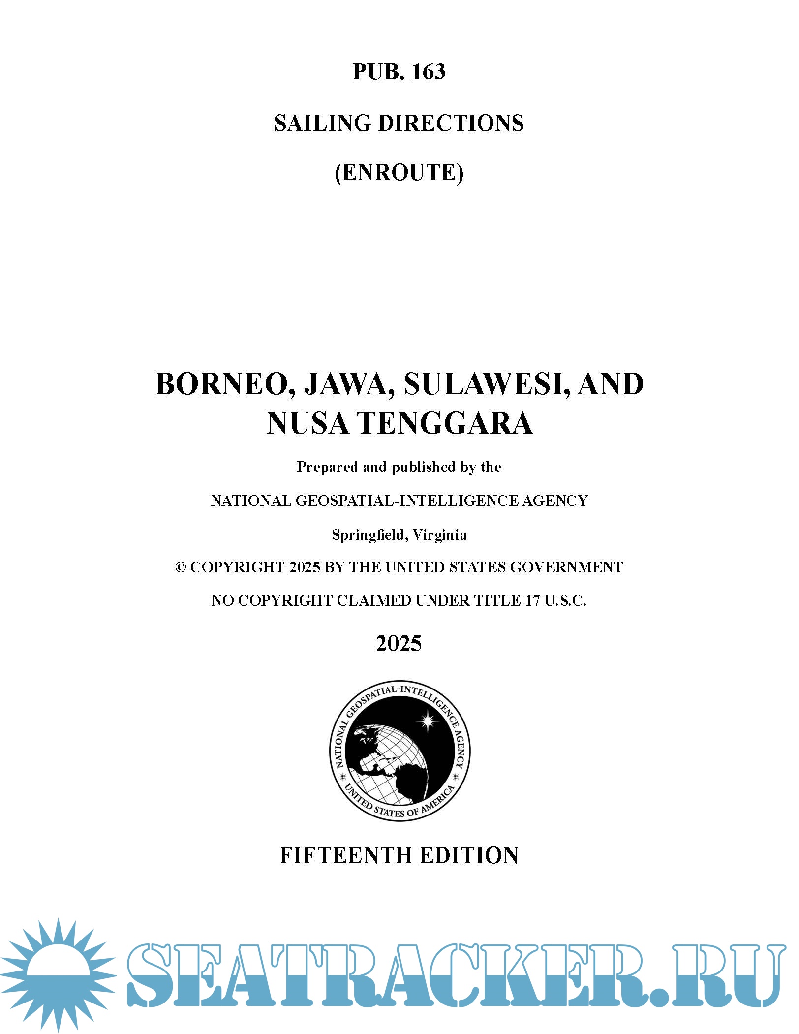 Year: 2025 Language: English Author: National Geospatial Intelligence Agency Genre: Documentation Edition: 15th Format: PDF Quality: eBook Pages count: 478 Description: Pub. 163, Sailing Directions (Enroute) Borneo, Jawa, Sulawesi, and Nusa Tenggara, Fourteenth Edition, 2018, is issued for use in conjunction with Pub. 120, Sailing Directions (Planning Guide) Pacific Ocean and Southeast Asia. The companion volumes are Pubs. 161, 162, and 164. Digital Nautical Charts 4 and 11 provide electronic chart coverage for the area covered by this publication. Electronic Nautical Charts Regions L, M, S1, and T1 provide electronic chart coverage for the area covered by this publication. This publication has been corrected to 22 February 2025.