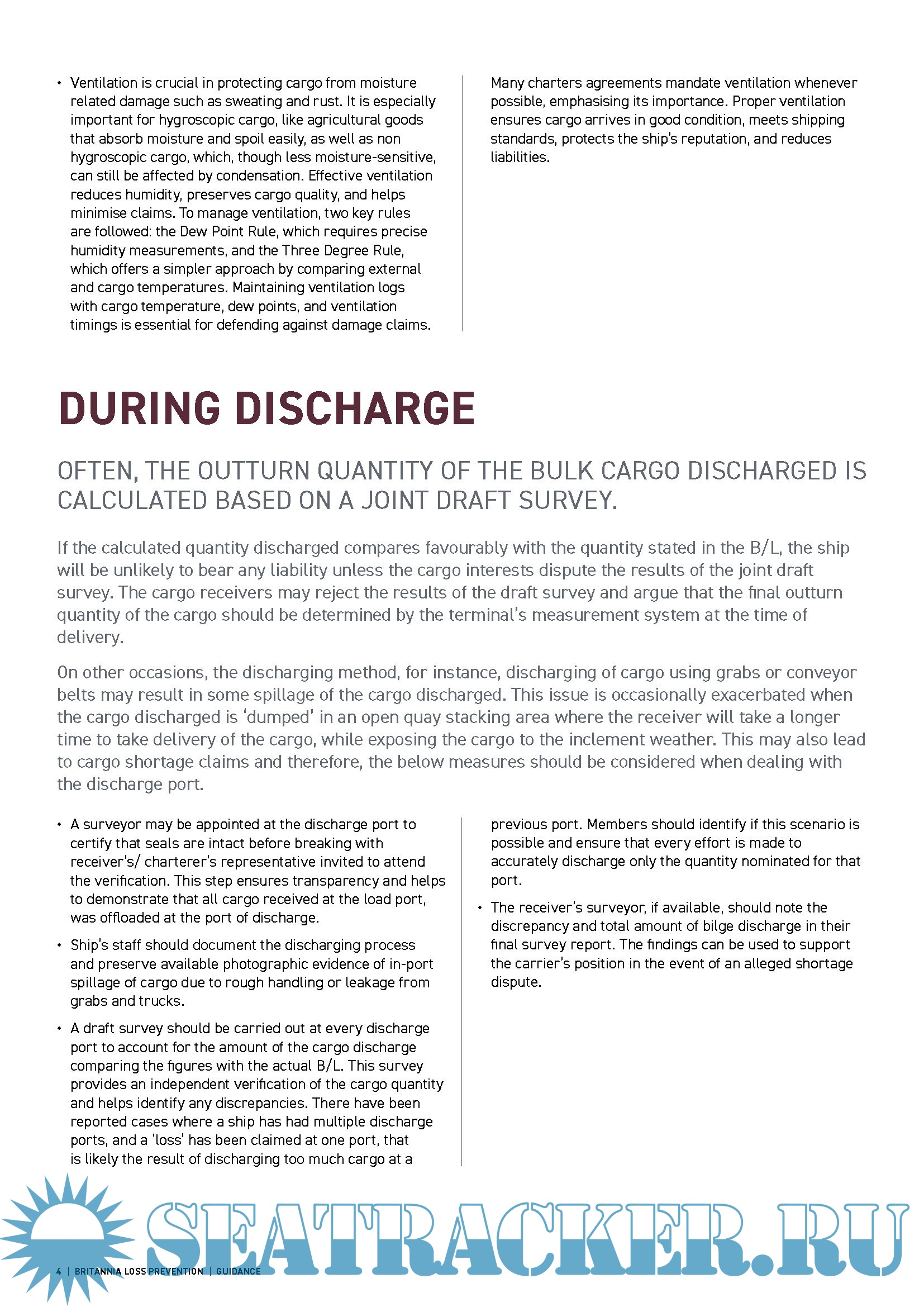 Year: 2025 Language: English Author: Britannia P&I Club Genre: Guide Edition: March 2025 Format: PDF Quality: eBook Pages count: 17 Description: Bulk Cargo Shortage Claims are a common yet complex issue, they usually occur when there is a significant discrepancy between the quantity of cargo noted on the bill of lading (B/L) and the quantity received at the port of destination. Such discrepancies can be attributed to various factors, including inaccurate measurement of cargo, improper stowage, mishandling during transport, spillage or even theft. Therefore, it is essential to accurately measure and record the cargo quantity during each phase of cargo transportation. To be read in conjunction with the below guidance, we include a helpful Checklist that can be consulted during each stage of dry bulk cargo carriage, to not only protect the ship’s interests in the matter but also facilitate efficient preliminary investigations on board the ship should a claim occur. Draft surveys are essential when confirming the cargo has been accurately measured to determine ship’s figures during loading. Accurate draft surveys require precise measurements of the water density, ship’s constant, consumable weights, ballast, fuel, fresh water, etc.