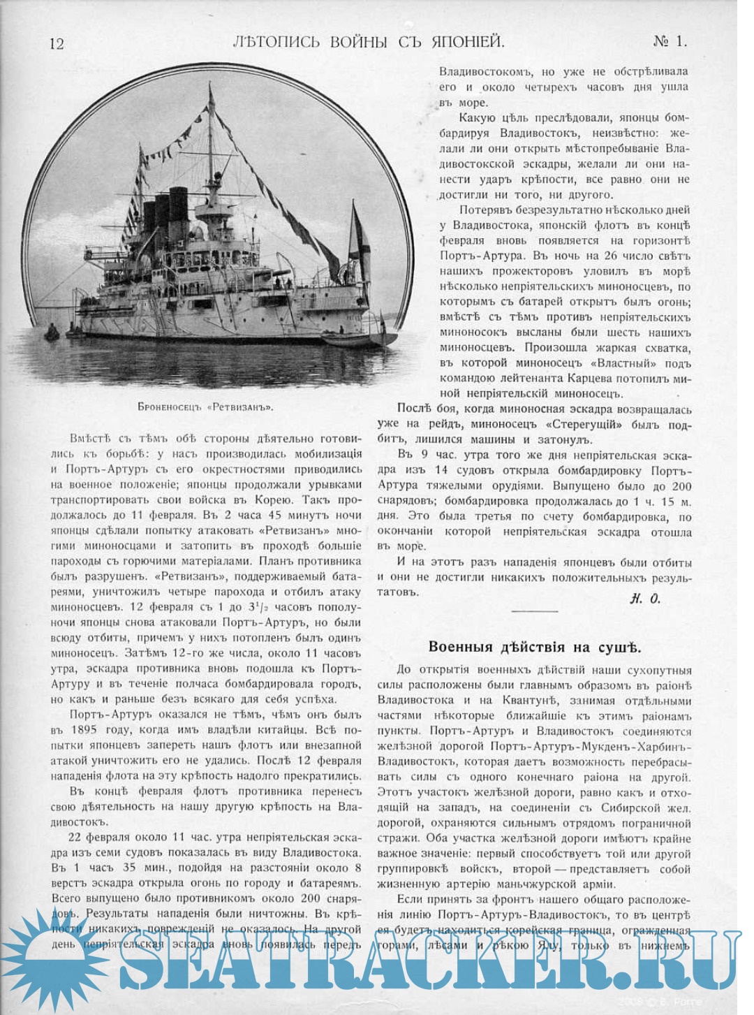 Год выпуска: 1904 - 1905 Язык: Русский Автор: Редактор-издатель полковник Дубенский Жанр: Периодическое издание (журнал) Издательство: Т-во Р. Голике и А. Вильборг Формат: PDF Качество: Отсканированные страницы Количество страниц: 24 Описание: Вашему вниманию представлена подборка журнала "Летопись войны с Японией" который издавался в с первого дня в течение всей войны, в 1904-1905 году и освещал события и персоналии событий тех дней. Полная подборка журналов публикуется впервые, она содержит очень много интересной информации о Русско-Японской войне, множество фотографий, информации о наградах, георгиевских кавалерах, военных операциях всех уровней и жизни простых русских солдат. Журнал издавался еженедельно в течение всей Русско-Японской войны. В журнале дается очень яркое, живое описание той войны. Много материалов о политической ситуации того периода. В каждом номере публиковались приказы, списки награжденных, списки потерь и множество других документов. Много уникальных фотографий (не только русских, но и японских) и превосходных рисунков фронтовых художников. В раздачу также входят оглавления для облегчения поиска и приложения с наградными списками. Категорически рекомендую всем, кто интересуется военной историей России. Много материала по боевым действиям на морском театре.
