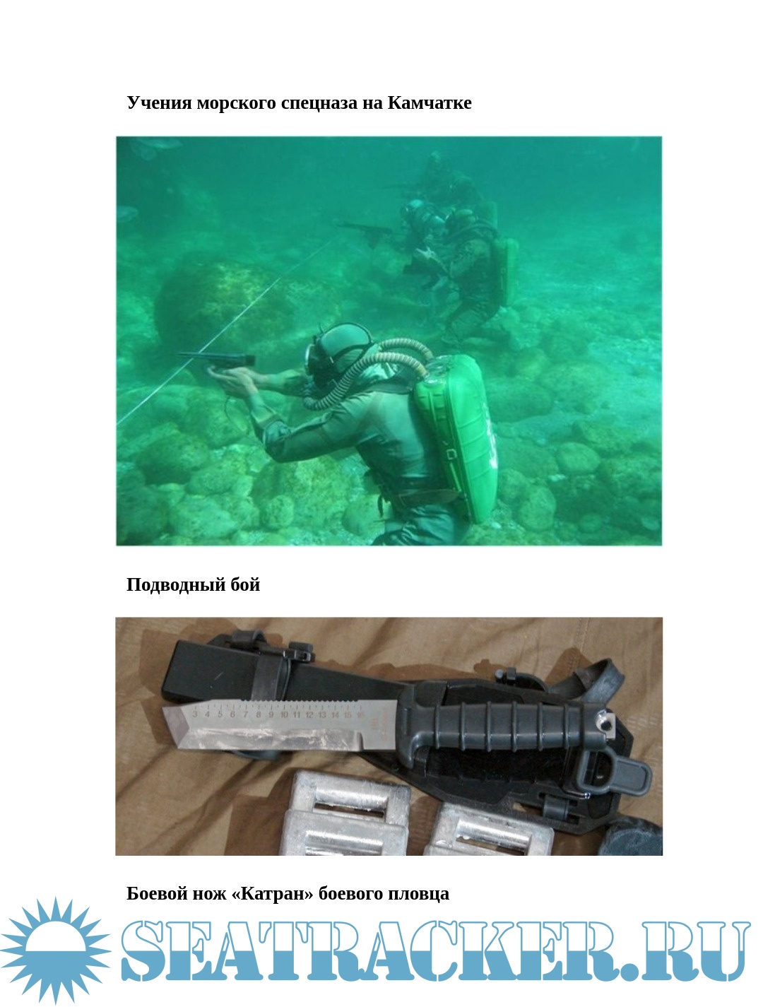 История подводного спецназа. Подготовка подводного спецназа. Боевой дайвинг. Опасные морские животные. Автономные дыхательные аппараты. Снаряжение для боевого пловца. Обучение подводному плаванию. Ножевой бой под водой. Сигналы для подводных пловцов. Элементы подводной гидрографии. Морские котики США подготовка применение. Спецназ ВМФ России. Боевые операции морского спецназа. Обеспечение высадки морского десанта. Боевые пловцы общего назначения. История 17-й бригады спецназа ГРУ ЧФ СССР. Спецназ Черноморского флота СССР в последний период своего существования (1990–1991 годы). РО ТОФ ГРУ ГШ Холулай. Отряды специального назначения по борьбе с диверсионными силами и средствами ВМФ СССР и России. Отряды ПДСС и «Дельфин» – гроза подводных диверсантов. Вооружение и оборудование подводного спецназа. Подводные транспортировщики. Сверхмалые подводные лодки. Фотографии иллюстрации.