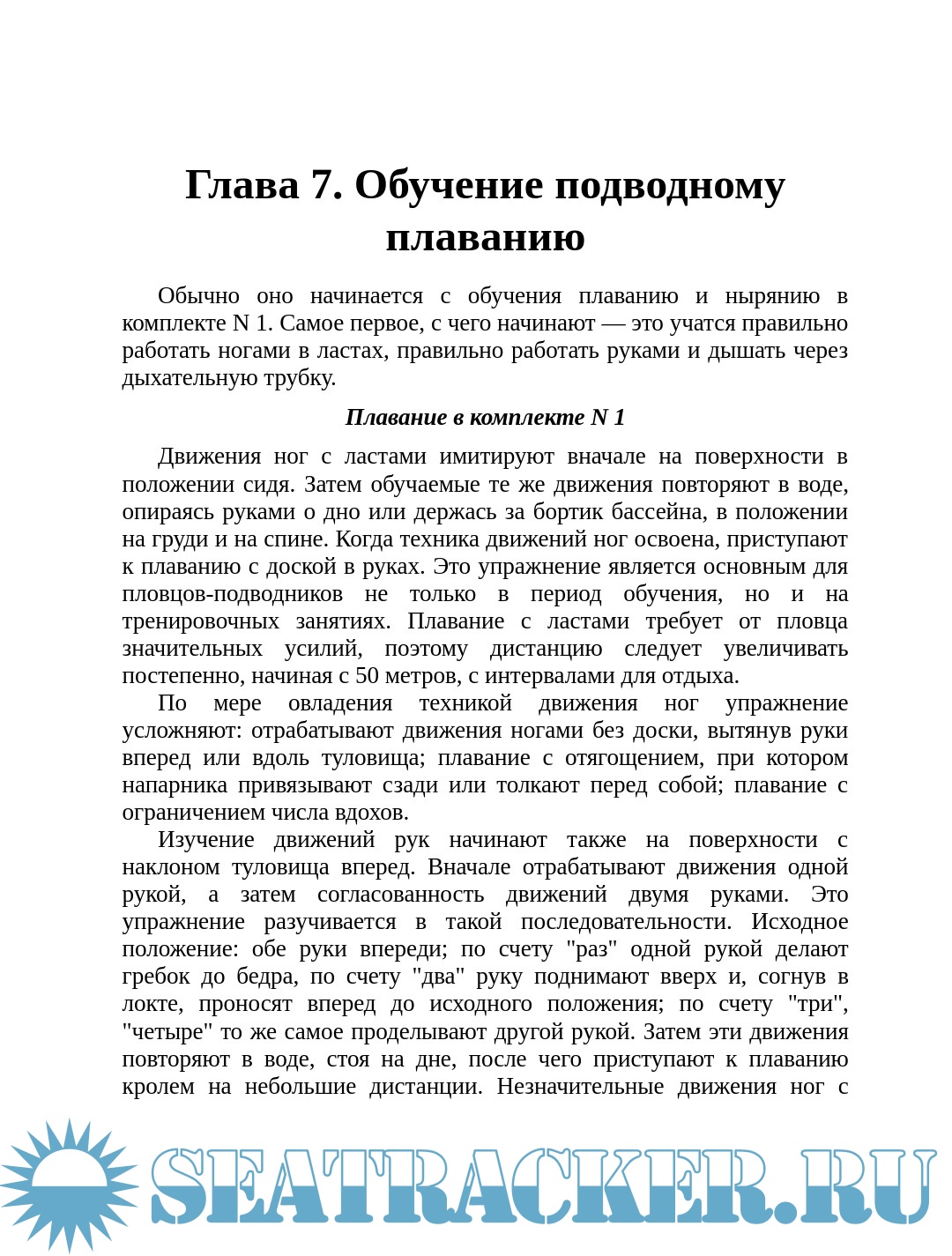 Обучение подводному плаванию.