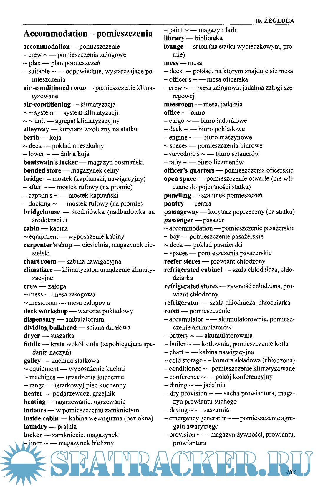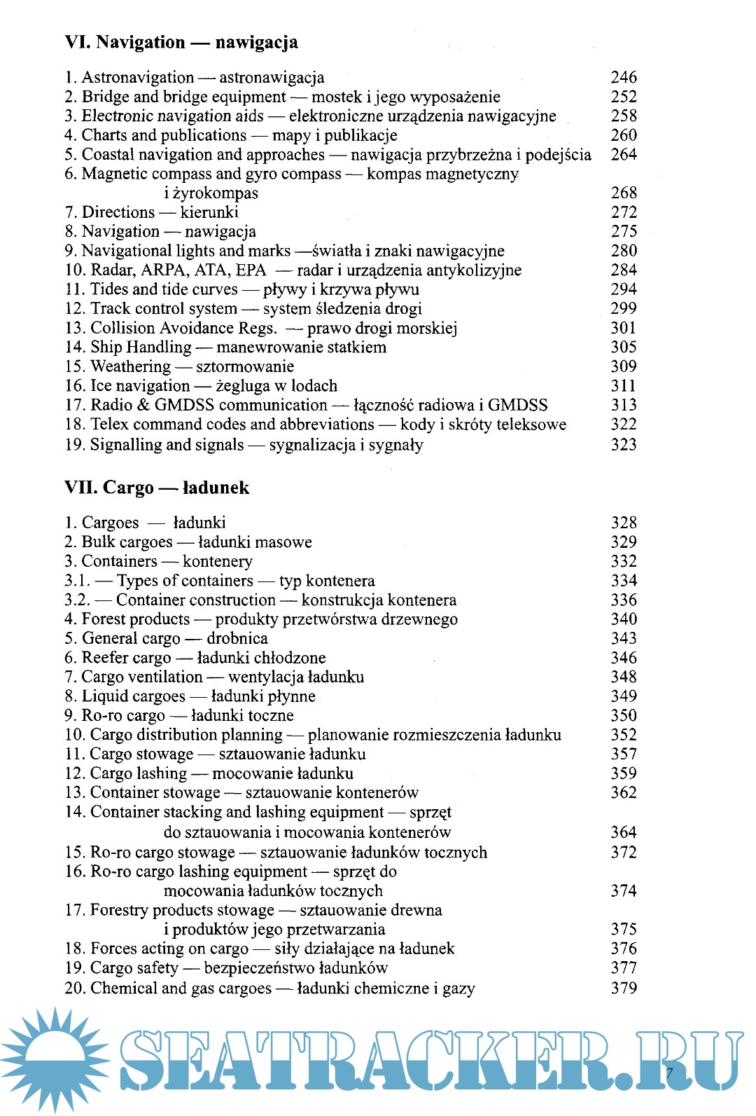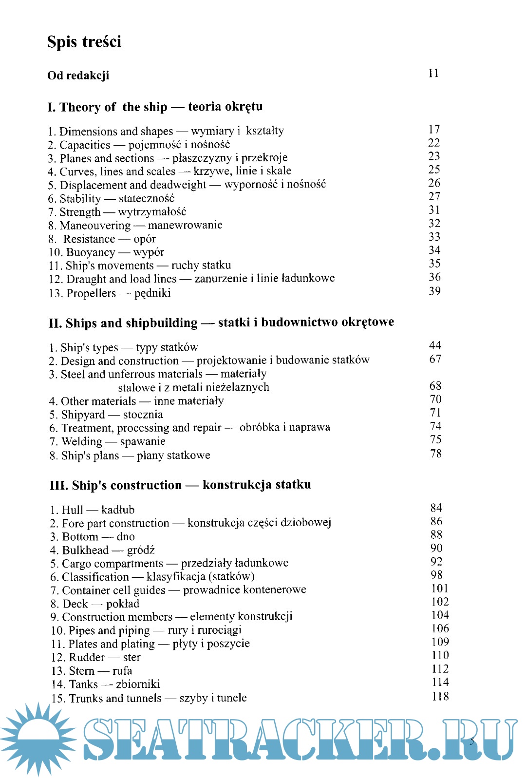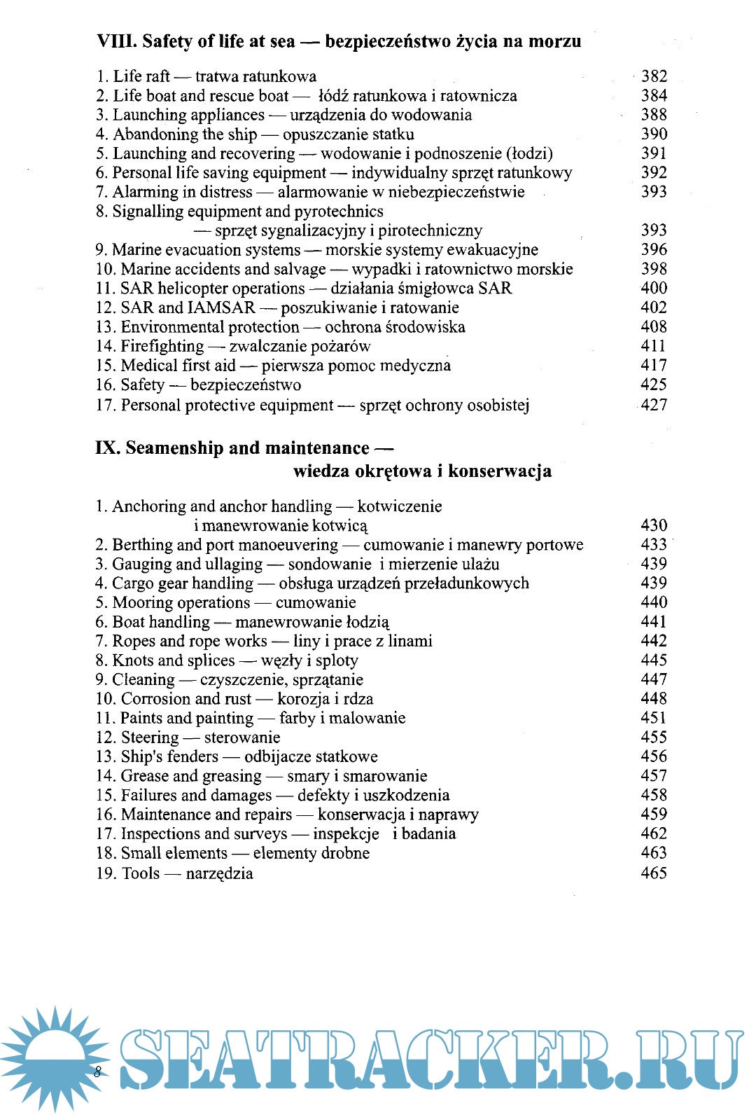 Description: Obszerny słownik zawierający setki rysunków z dwujęzycznym opisem, pokrywający całą problematykę statkową oraz codzienne słownictwo używane na morzu.