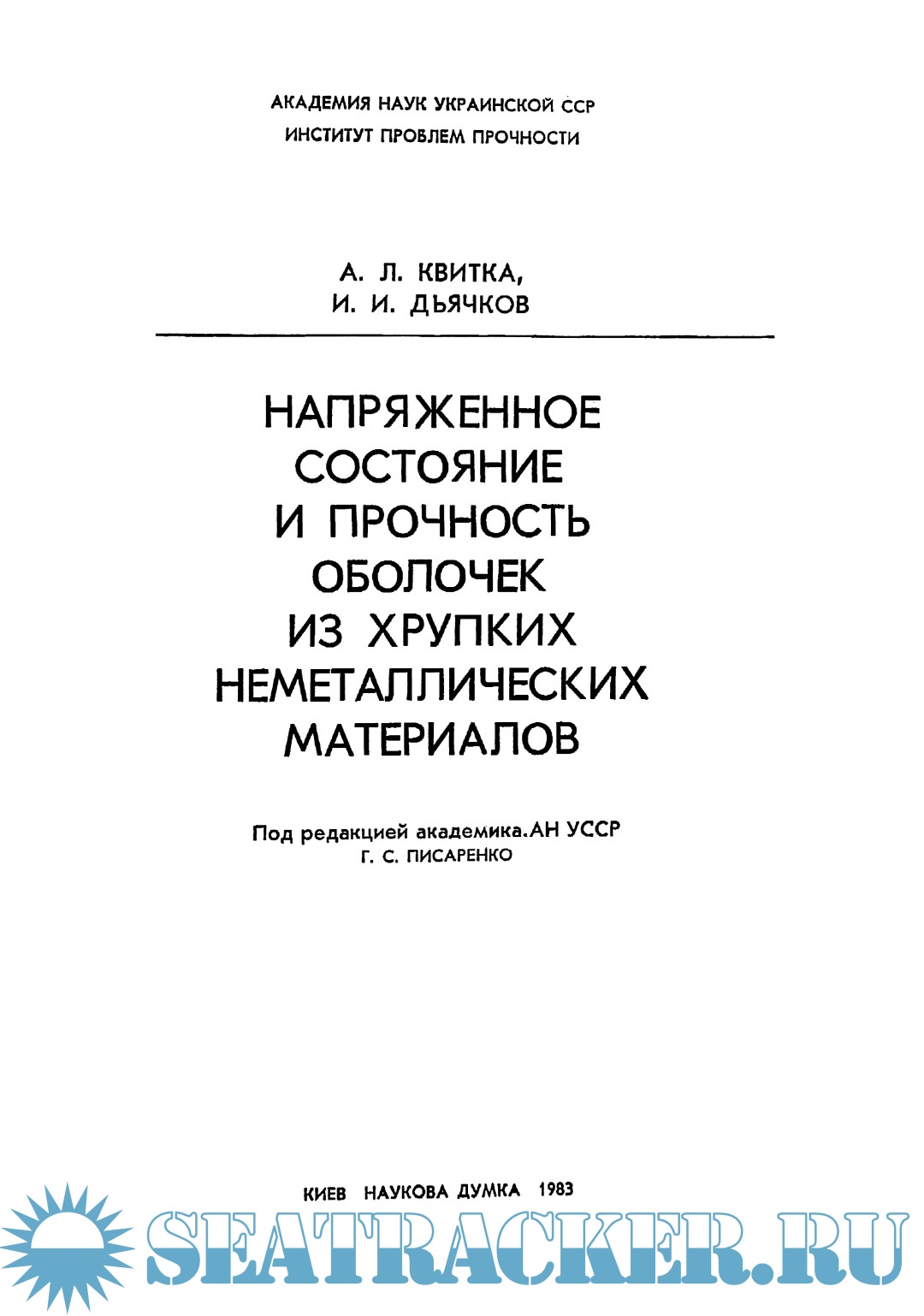 Квитка А.Л., Дьячков И.И. Напряженное состояние и прочность оболочек из хрупких неметаллических материалов, 1983.pdf