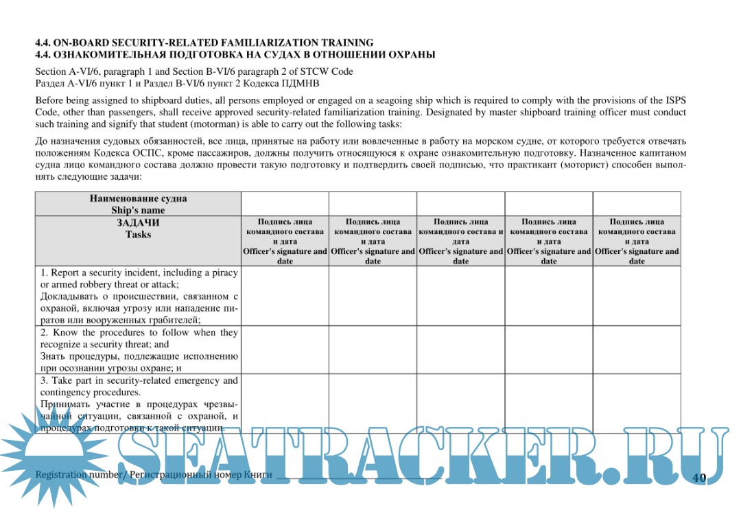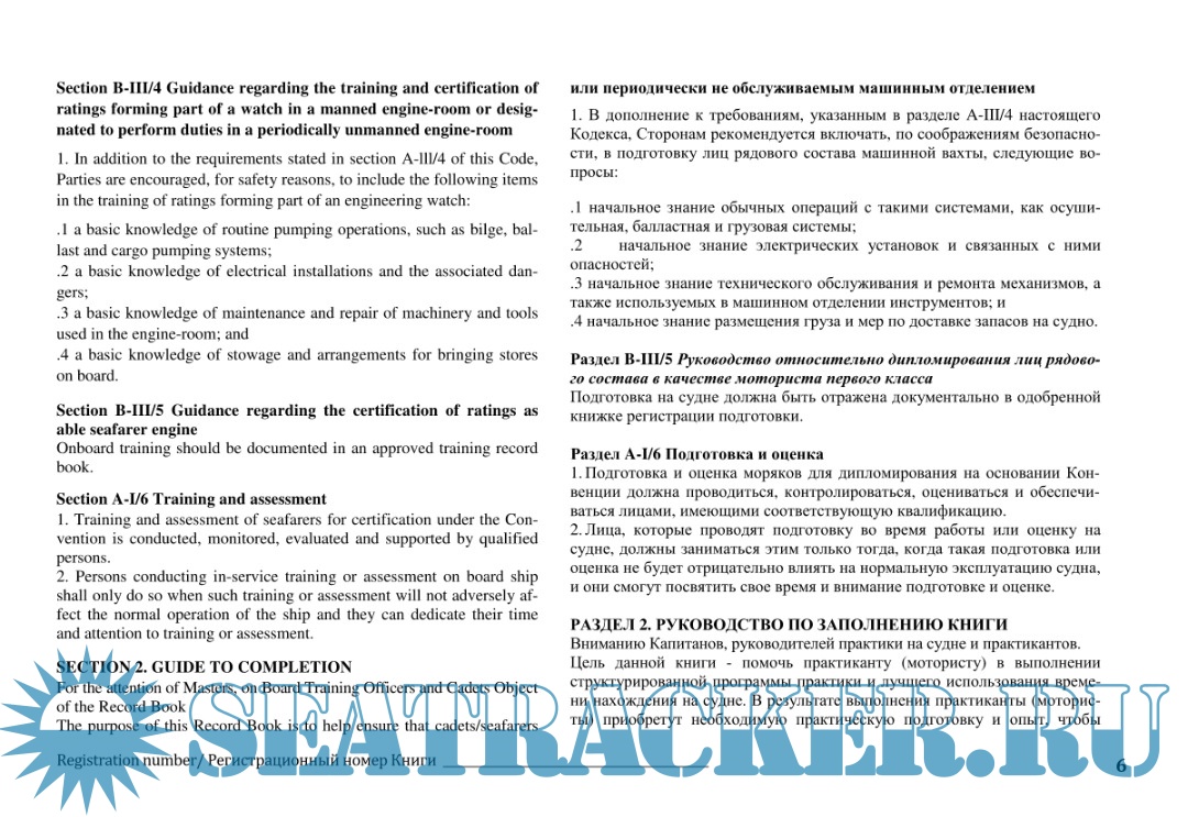 Год выпуска: 2015 Язык: Русский, Английский Автор: А. Л. Боран-Кешишьян Жанр: Книга регистрации Издательство: НГМА Формат: PDF Качество: Отсканированные страницы Количество страниц: 87 Описание: Эта книга предназначена для подготовки морских специалистов к получению квалификационных свидетельств по стандартам Международной конвенции STCW 1978 с поправками. Она охватывает требования к матросам-мотористам, несущим вахту в машинном отделении или выполняющим обязанности на периодически необслуживаемых судах, а также к мотористам первого класса. Особое внимание уделяется практическому обучению на борту: ведению Книги регистрации практики, выполнению задач под наблюдением офицеров, подтверждению компетентности и безопасной работе с механизмами судна. Подробно рассмотрены обязательные и дополнительные навыки, включая работу с насосными системами, электроустановками, техническое обслуживание и размещение грузов. Книга обеспечивает систематическую программу обучения, контроль прогресса и соответствует требованиям российских и международных правил, помогая кадетам и морякам приобрести практический опыт и профессиональные навыки для успешной сертификации и безопасной службы на судне.