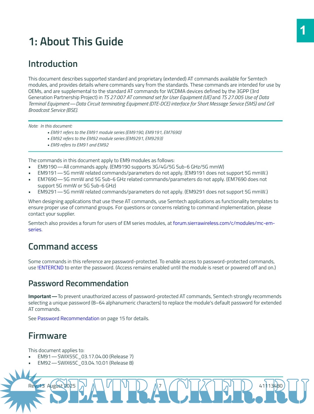 Description: This document describes supported standard and proprietary (extended) AT commands available for Semtech