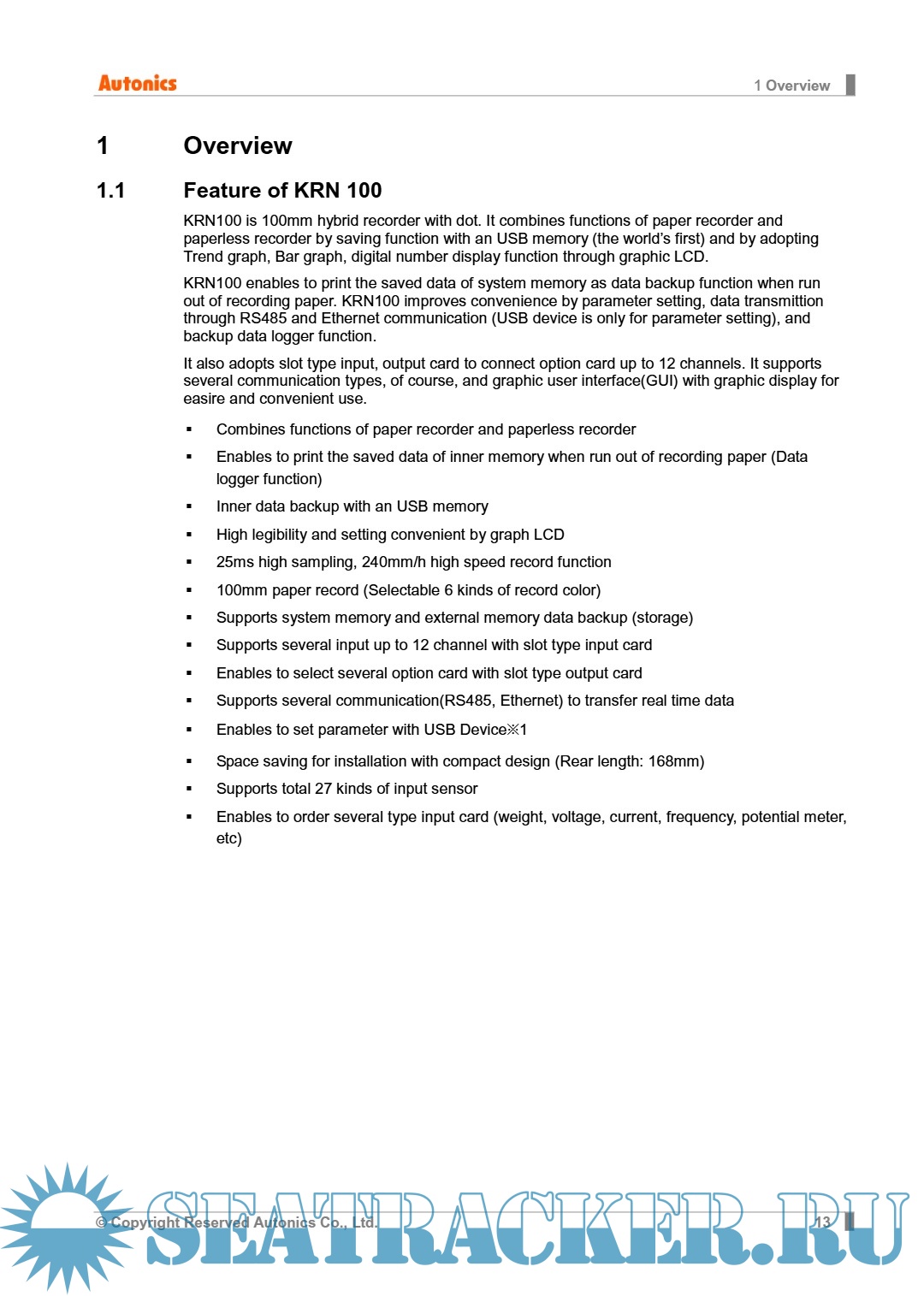 Year: 2013 Language: English Author: Autonics Format: PDF Quality: eBook Pages count: 153 Description: This user manual contains information about the product and its proper use, and should be kept in a place where it will be easy to access. ■ Please familiarize yourself with the information in this manual before using the product. ■ This manual provides detailed information on the product's features. It does not offer any guarantee concerning matters beyond the scope of this manual. ■ This manual may not be edited or reproduced in either part or whole without permission. ■ A user manual is provided as part of the product package. Visit our home-page (www.autonics.com) to download a copy. ■ The manual’s content may vary depending on changes to the product's software and other unforeseen developments within Autonics, and is subject to change without prior notice. ■ We contrived to describe this manual more easily and correctly. However, if there are any corrections or questions, please notify us these on our homepage.