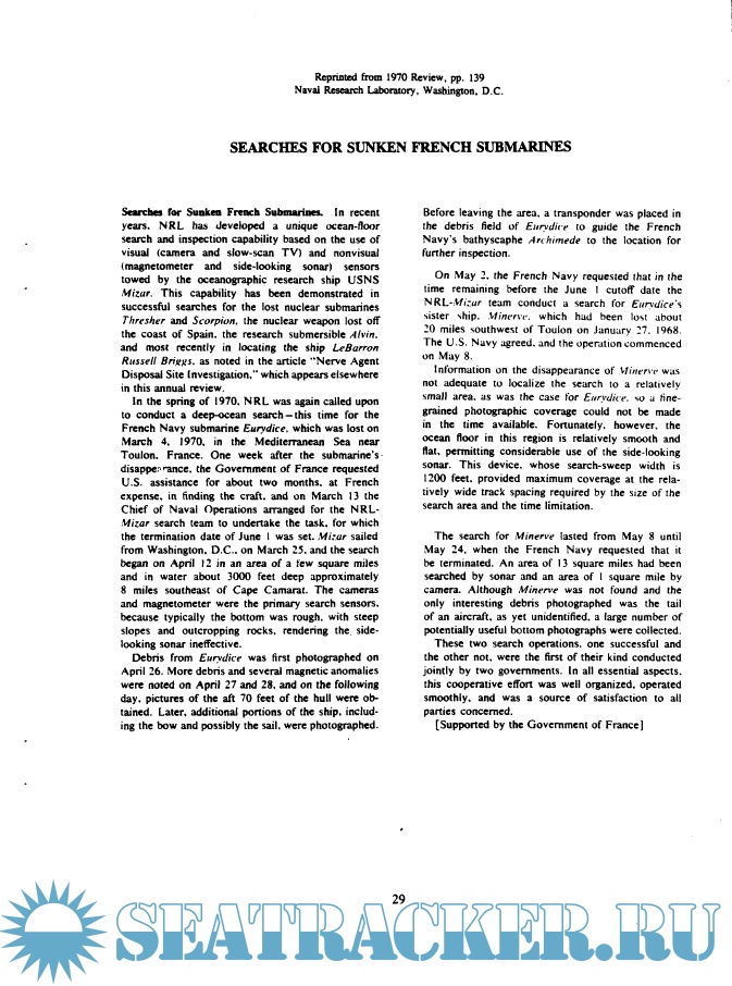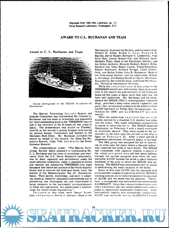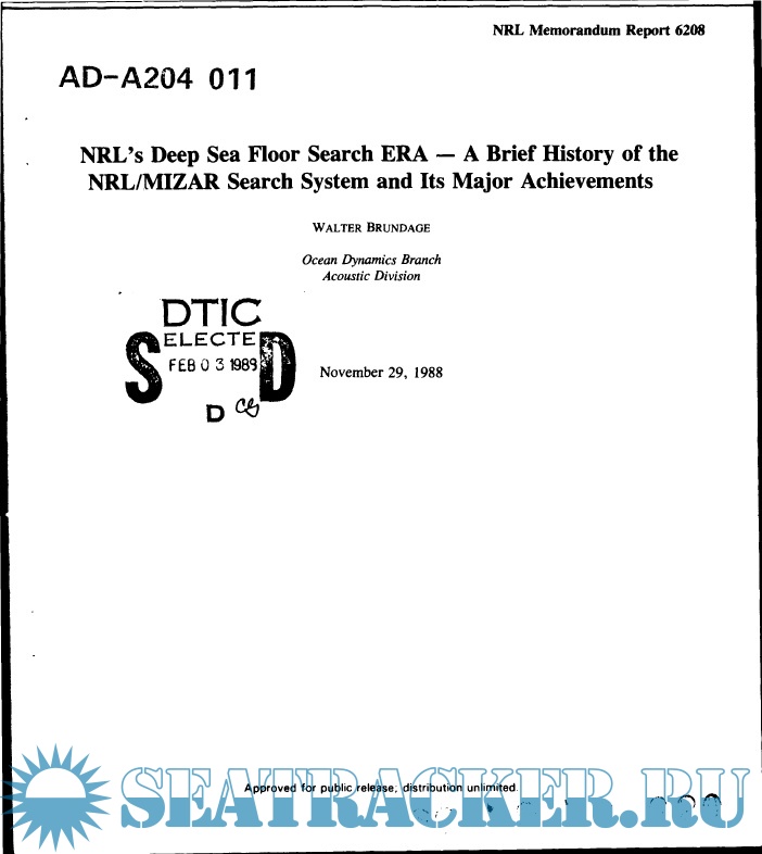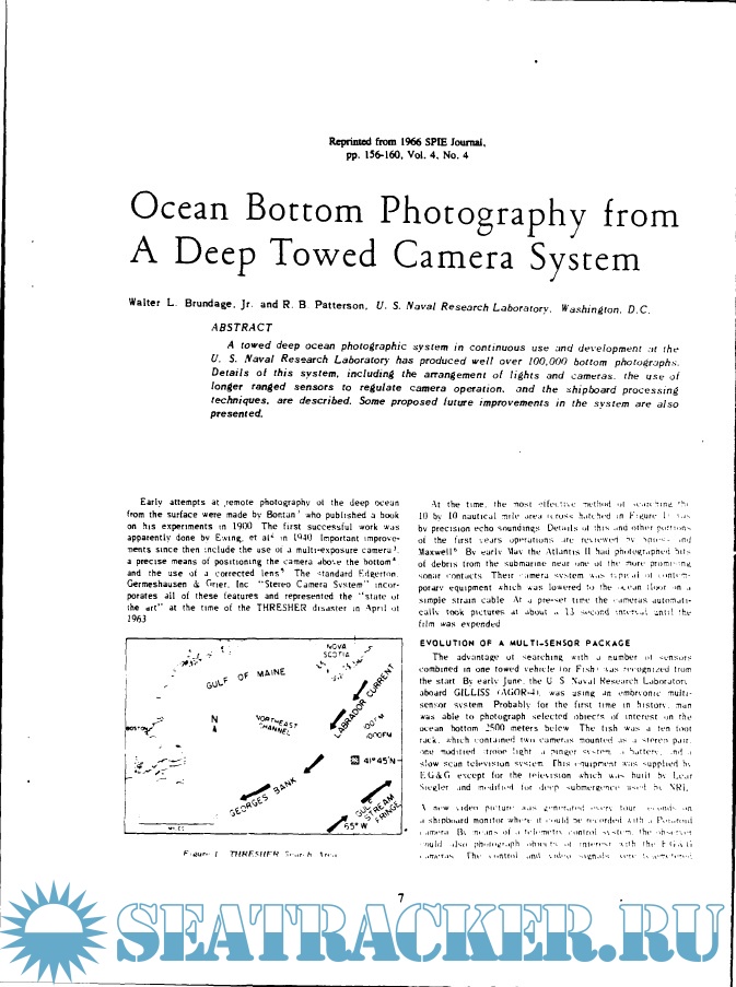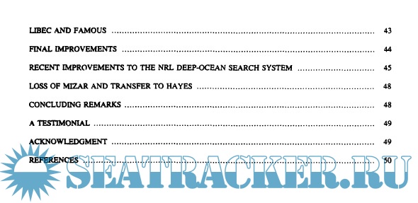 Description: В 1963 году, после гибели АПЛ "Thresher", в Военно-морской исследовательской лаборатории (Naval research laboratory - NRL) небольшая группа сотрудников начала разработку средств и методов исследования глубоководных участков морского дна.