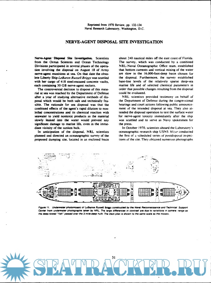 - систематическое исследование района затопления транспорта "Le Barron Russell Briggs" с химическим оружием на борту, 1970-1974 гг.