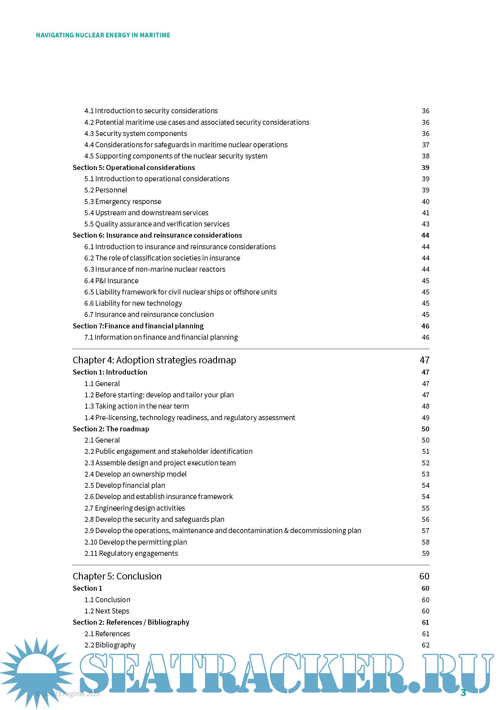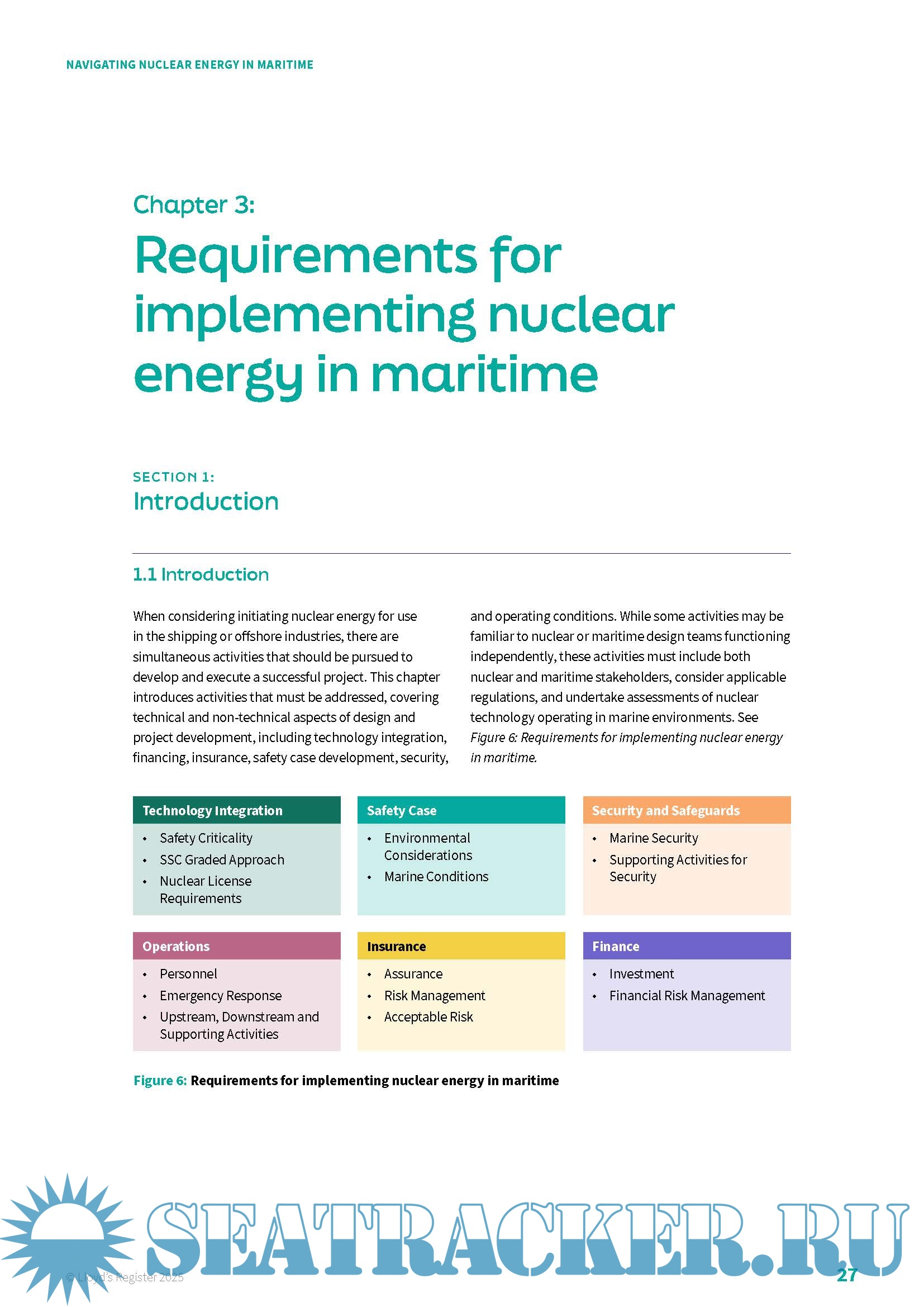 The document covers the regulatory and technical frameworks necessary for successful implementation, plus also discussing the roles of key bodies such as the International Maritime Organization (IMO) and the International Atomic Energy Agency (IAEA), stressing the importance of harmonising maritime and nuclear standards. Topics covered include safety classification, environmental impact assessments, structural integrity, and the development of a robust nuclear safety case. Security measures are also addressed, with emphasis on physical and cyber protection systems, as well as insider threat mitigation.