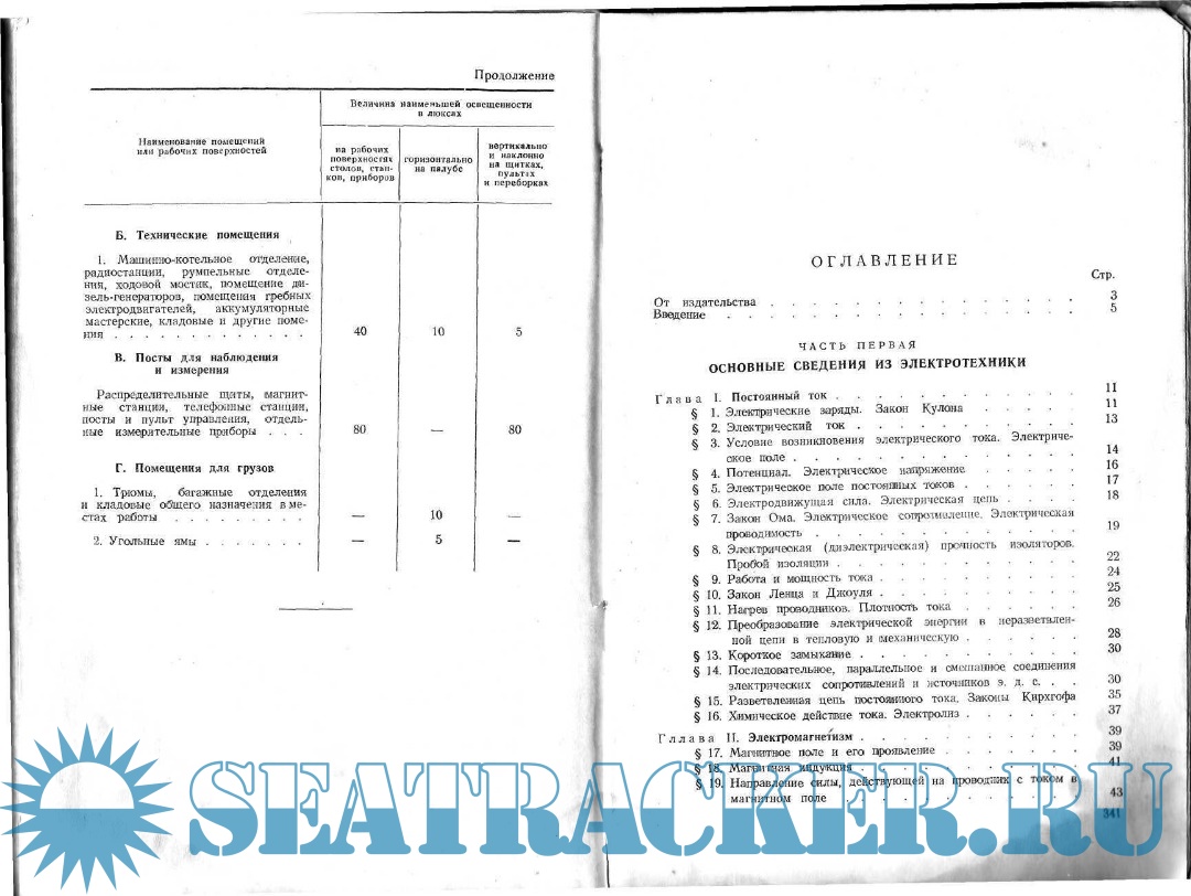 Год выпуска: 1955 Язык: Русский Автор: П. П. Суслин Издательство: Морской транспорт Формат: PDF Качество: Отсканированные страницы Количество страниц: 168 Описание: Учебное пособие предназначено для подготовки судовых электриков и состоит из четырёх основных частей. В первой части изложены базовые сведения по электротехнике, без которых невозможна квалифицированная работа на судне. Далее (во второй части) рассматриваются электрические машины, приборы и аппараты — их устройство, работа и эксплуатационные характеристики. Третья часть посвящена электрическому оборудованию судов: генераторам, распределительным системам, кабельным сетям, заземлению, защитам, эксплуатации в морских условиях. В заключительной, четвёртой части, представлены практические указания, технологические процессы монтажа, ремонта и обслуживания электрического оборудования на судах, вопросы безопасности и особенностей морской эксплуатации. Книга снабжена схемами, чертежами и рисунками черно-белого исполнения, что делает её удобным справочным пособием как для учащихся морских училищ, так и для действующих специалистов.