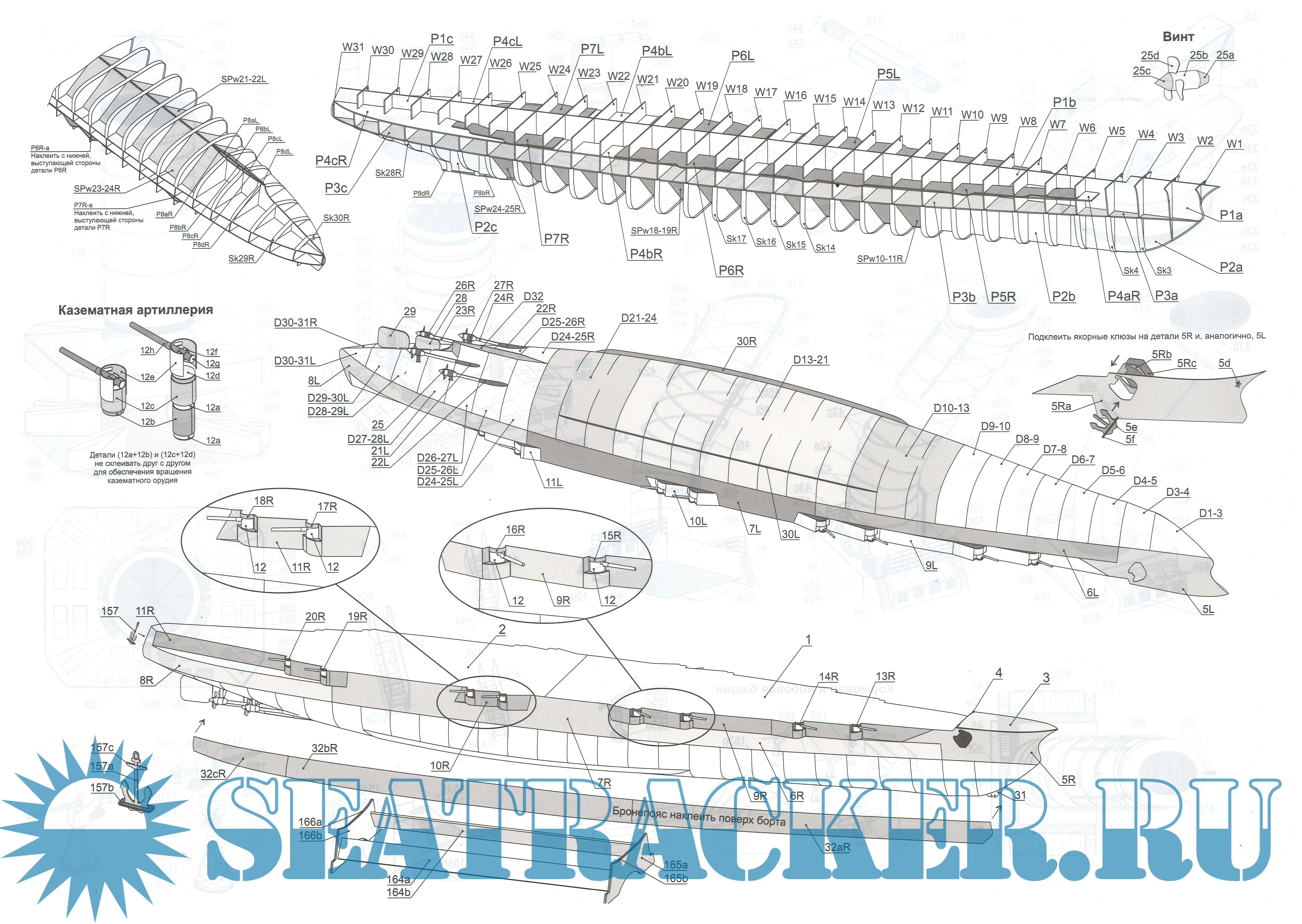 40 листов цветных выкроек и описаний для изготовления бумажной модели линкора "Парижская коммуна" по состоянию на 1937 год в масштабе 1:200