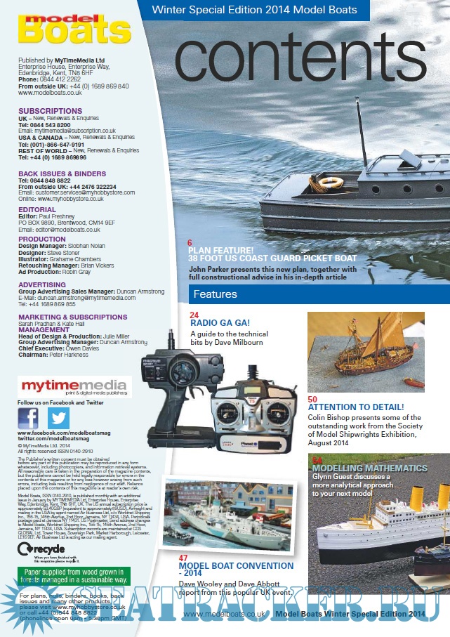 Year: 2014 Language: English Author: Lindsey Amrani (Editor) Genre: Periodical publication Format: PDF Quality: eBook Pages count: 100 Description: Model Boats magazine is a practical and informative read for those with a love for the hobby. It covers the latest news and views from the various clubs and associations around the country, useful hints, tips and step by step guides for those interested in the art of constructing a model boat as well as tests and recommendations of new boats and tools. Floating along behind these are great special features examining in depth different models from narrowboat to destroyer!