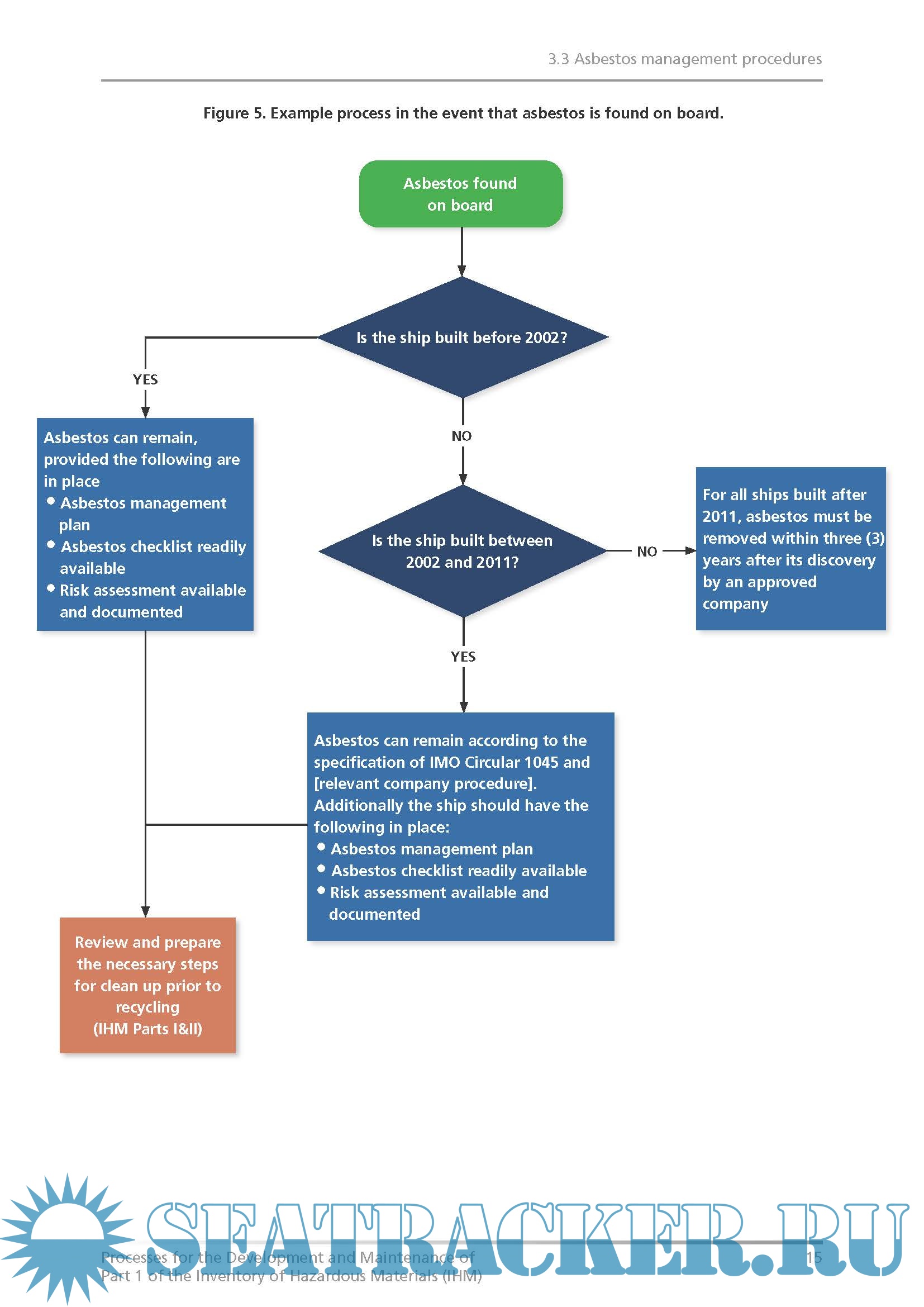 Description: The following document provides examples of process maps for developing and maintaining Part 1 of the Inventory of Hazardous Materials (IHM Part 1) on existing vessels in order to satisfy the requirements of both the EU Ship Recycling Regulation (EU SRR) and the Hong Kong International Convention for the Safe and Environmentally Sound Recycling of Ships (HKC). Together with the example process maps, general guidance on the procedures and a commentary on issues associated with compliance have been provided. This has been drafted based on experience, feedback and exchanges from and within INTERTANKO’s Environment Committee.