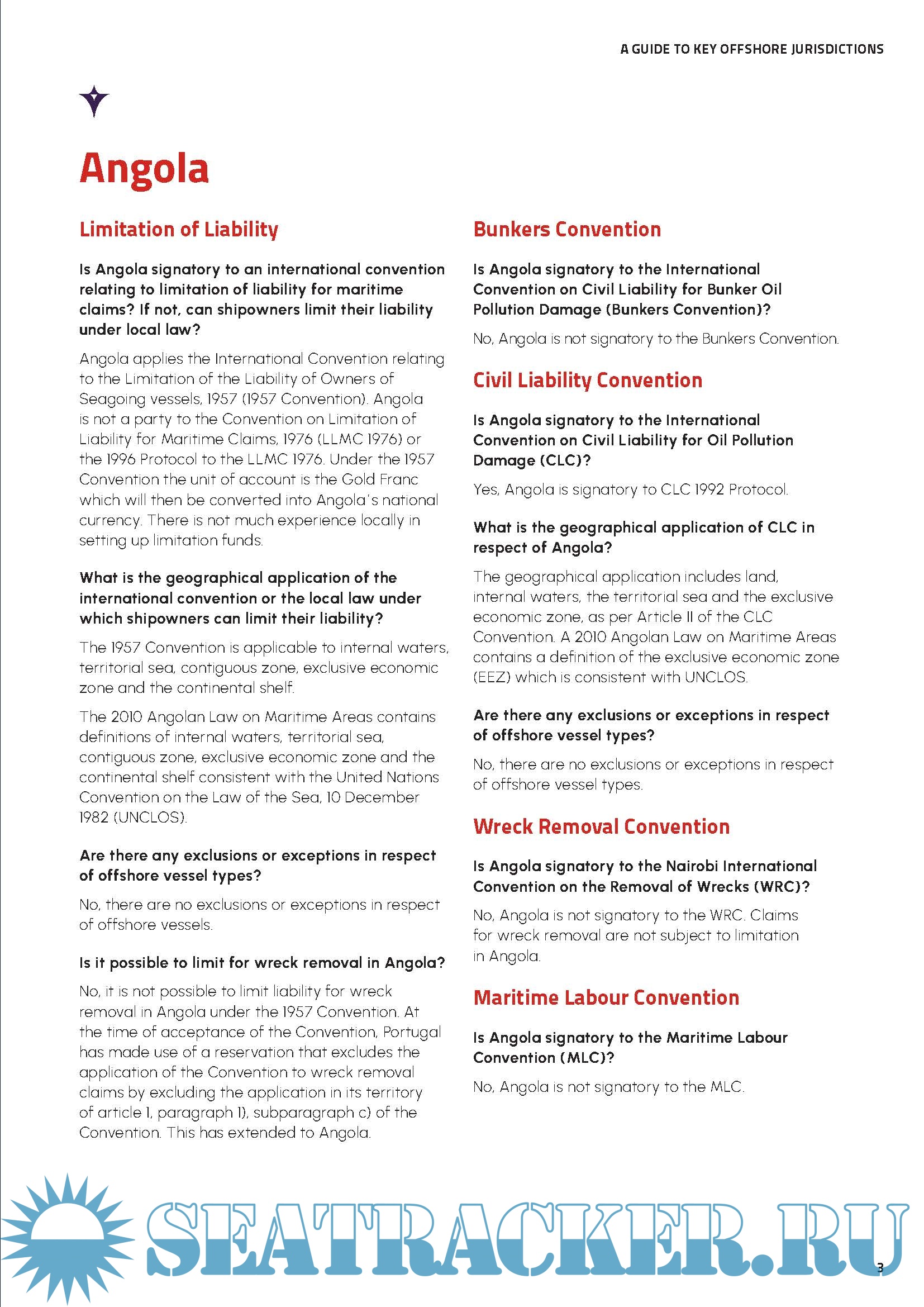 - the application and geographical reach of the Bunkers Convention, CLC Convention, Wreck Removal