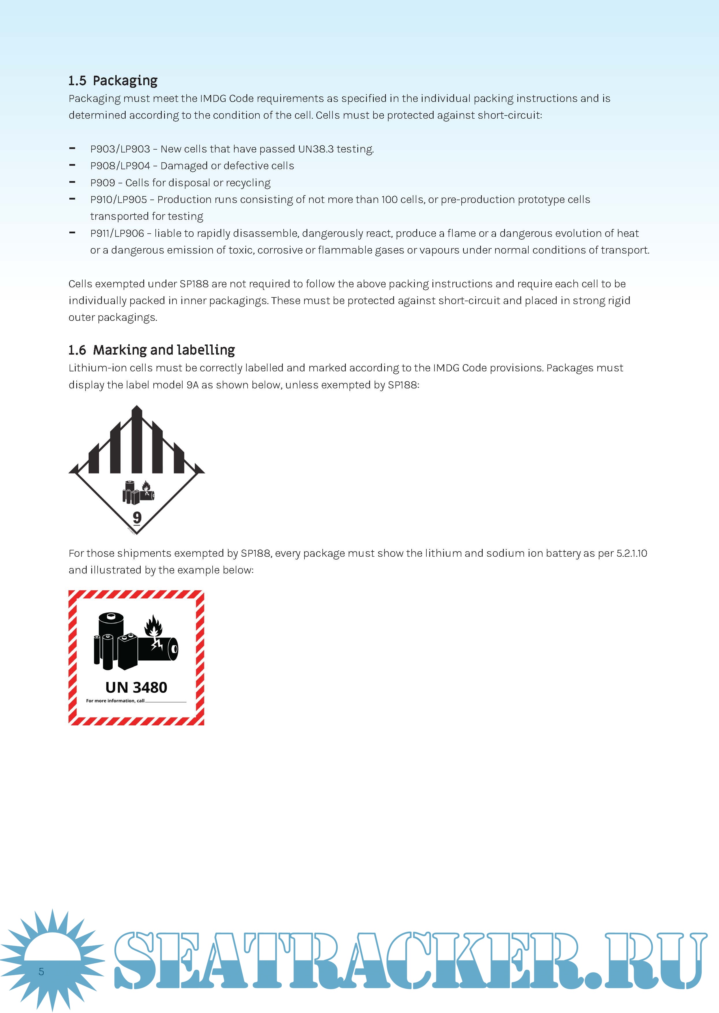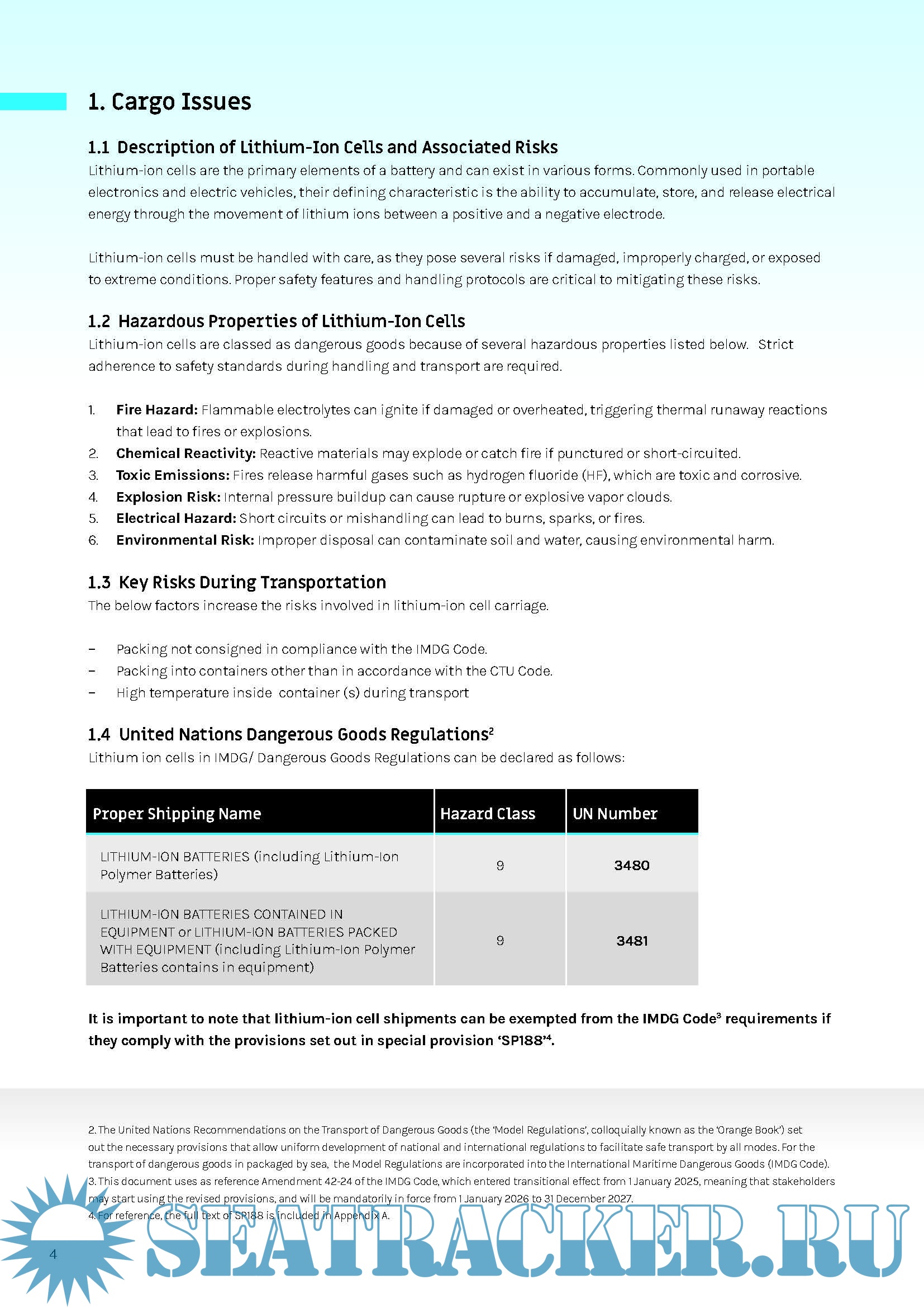 Description: This document provides shipping companies, operators and carriers with safety standard guidance for the transportation of lithium-ion cells, classified under UN Nos. 3480 and 3481, in Cargo Transport Units (CTUs). It focuses on the specific risks associated with shipping lithium-ion cells, which differ from lithium-ion batteries due