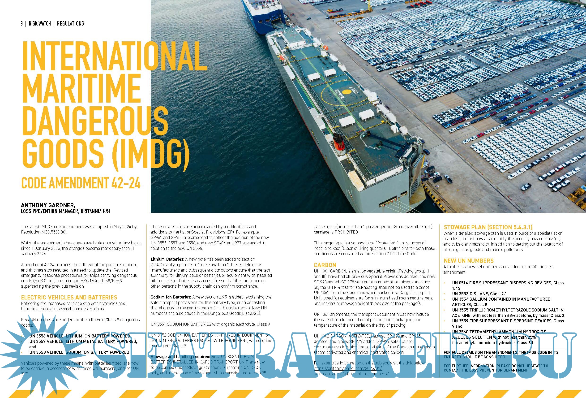 This edition highlights IMDG Code Amendment 42-24, outlining major updates to the transport of dangerous goods and new provisions for electric vehicles and battery cargoes. We hope you find this issue both informative and engaging, and that it supports your continued commitment to safe and compliant maritime operations.